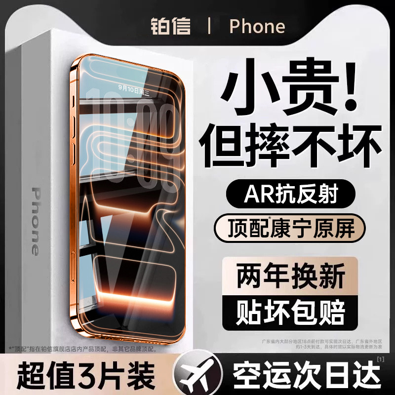 【李佳琦宠物&家装潮电节】倍思无边真防摔苹果17iPhone17Pro钢化膜16ProMax手机保护膜15防窥无尘仓贴膜