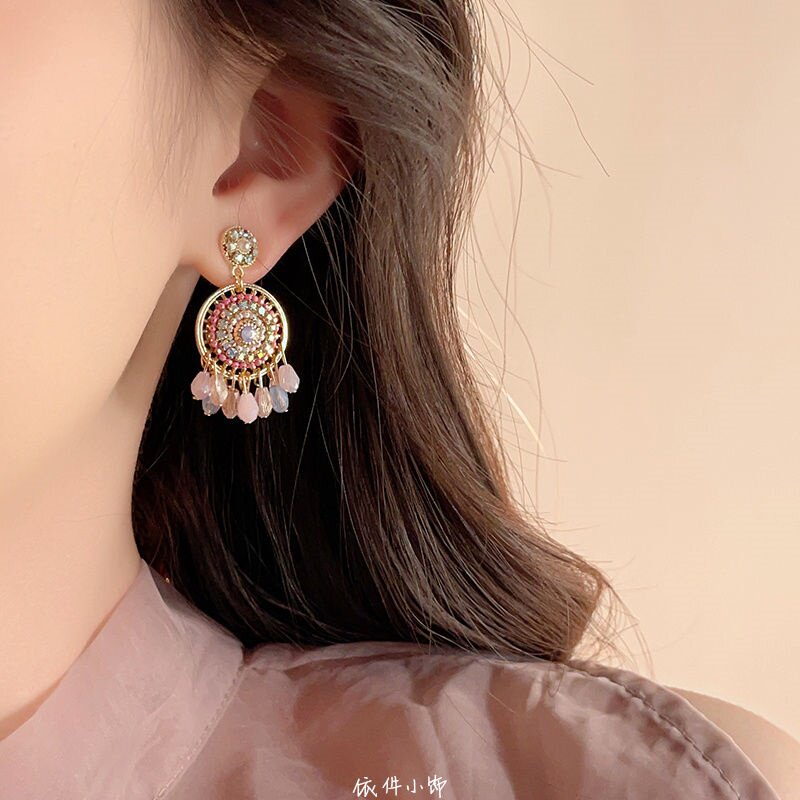 纯手工水晶耳钉女小众设计独特耳环2025新款爆款高级感民族风耳饰