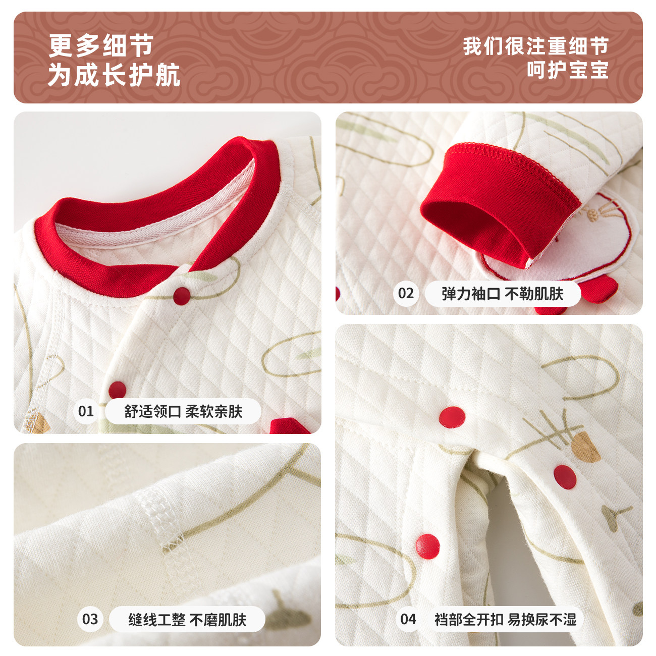 婧麒婴儿连身衣冬季过年拜年服长袖喜庆哈衣婴幼儿内穿打底爬爬服