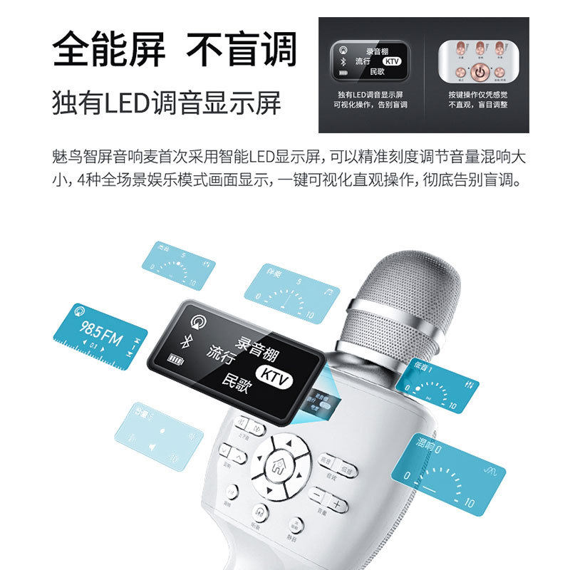 魅鸟智屏音响麦克风无线蓝牙手机直播全民K歌神麦家用户外扩音器
