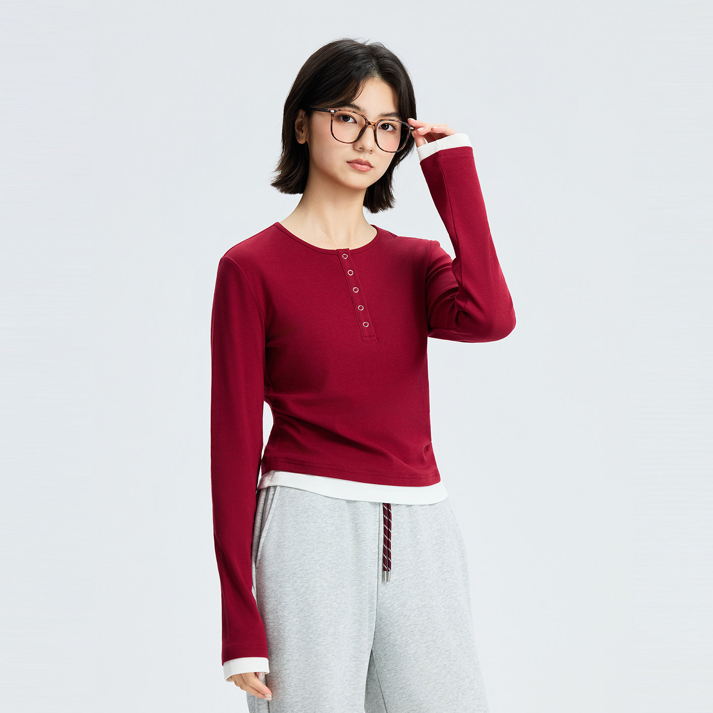 美特斯邦威T恤女2026春季新款时尚潮流修身内搭可外穿打底长袖