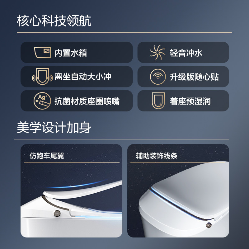 恒洁智能马桶感应全自动坐便器无水压翻盖水箱轻音家用小户型Qs2p