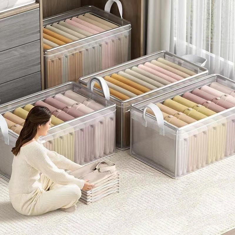 衣物收纳盒透明牛仔裤收纳框宿舍衣柜衣物整理箱钢架可折叠收纳盒
