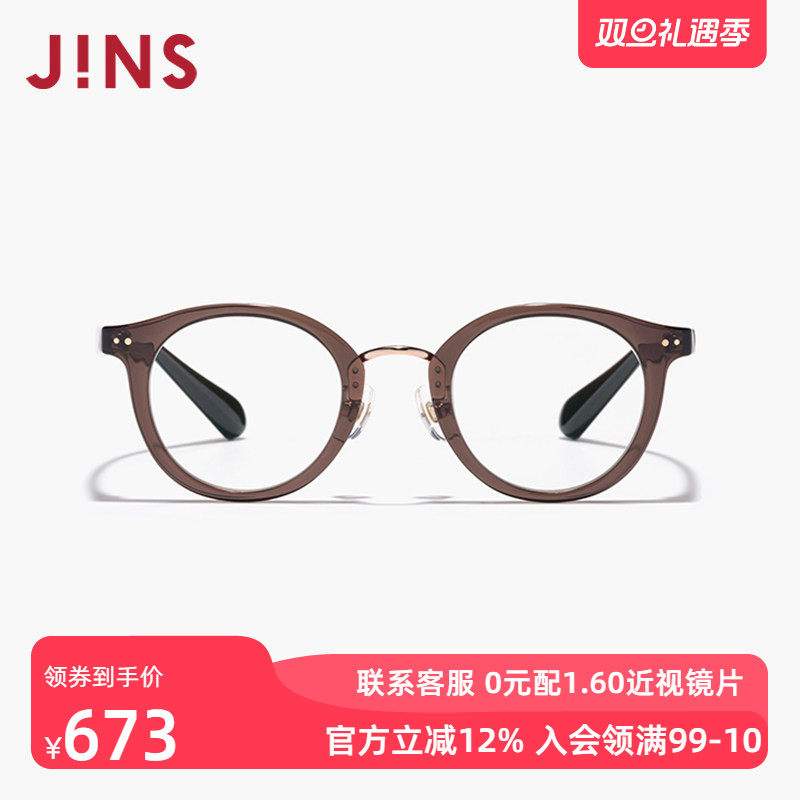 JINS睛姿含镜片复古圆框眼睛显大近视镜可配防蓝光镜片LRF24S020