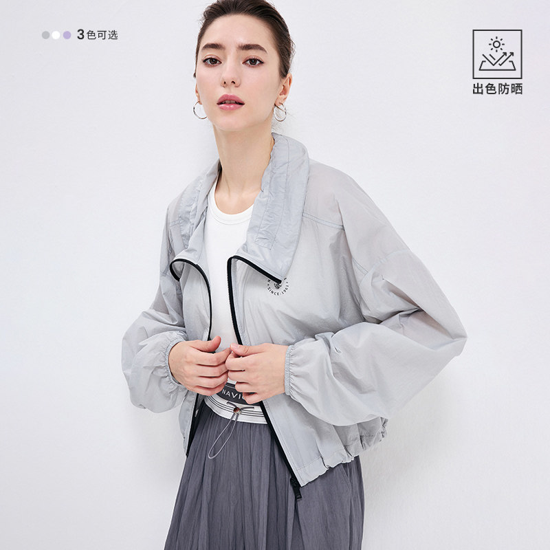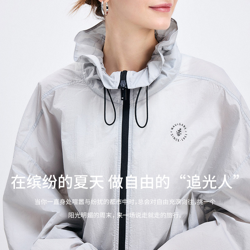 [防晒]Navigare意大利小帆船灰色短款防晒服女士夏季薄款宽松外套