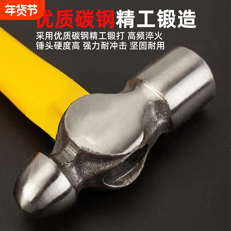 圆头锤家用一体铁锤小榔头手锤奶头锤子五金工具木工安装锤奶子锤