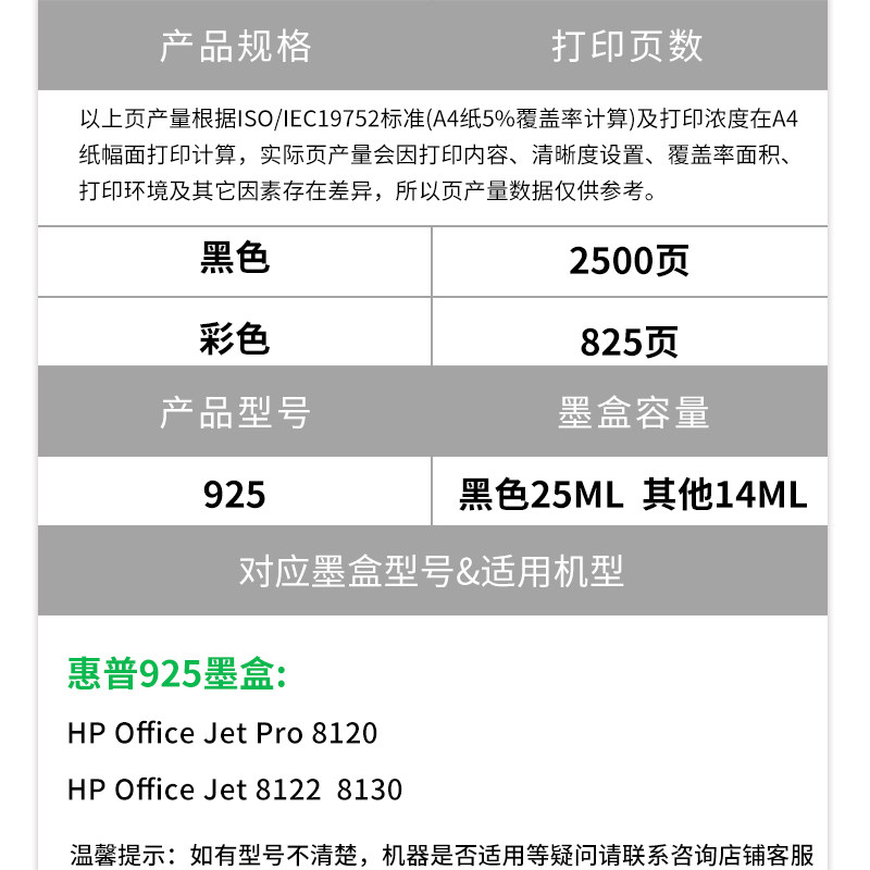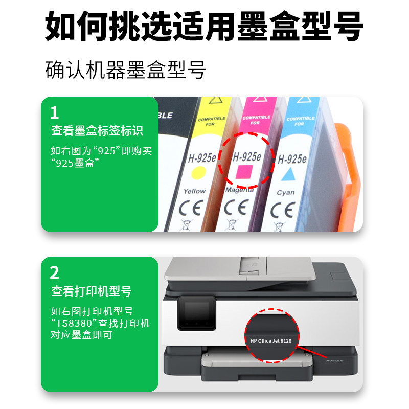 【原装品质】适用惠普8120墨盒925XL墨水盒HP OfficeJet Pro 8122 8130 925 925E黑色彩色喷墨一体打印机墨水