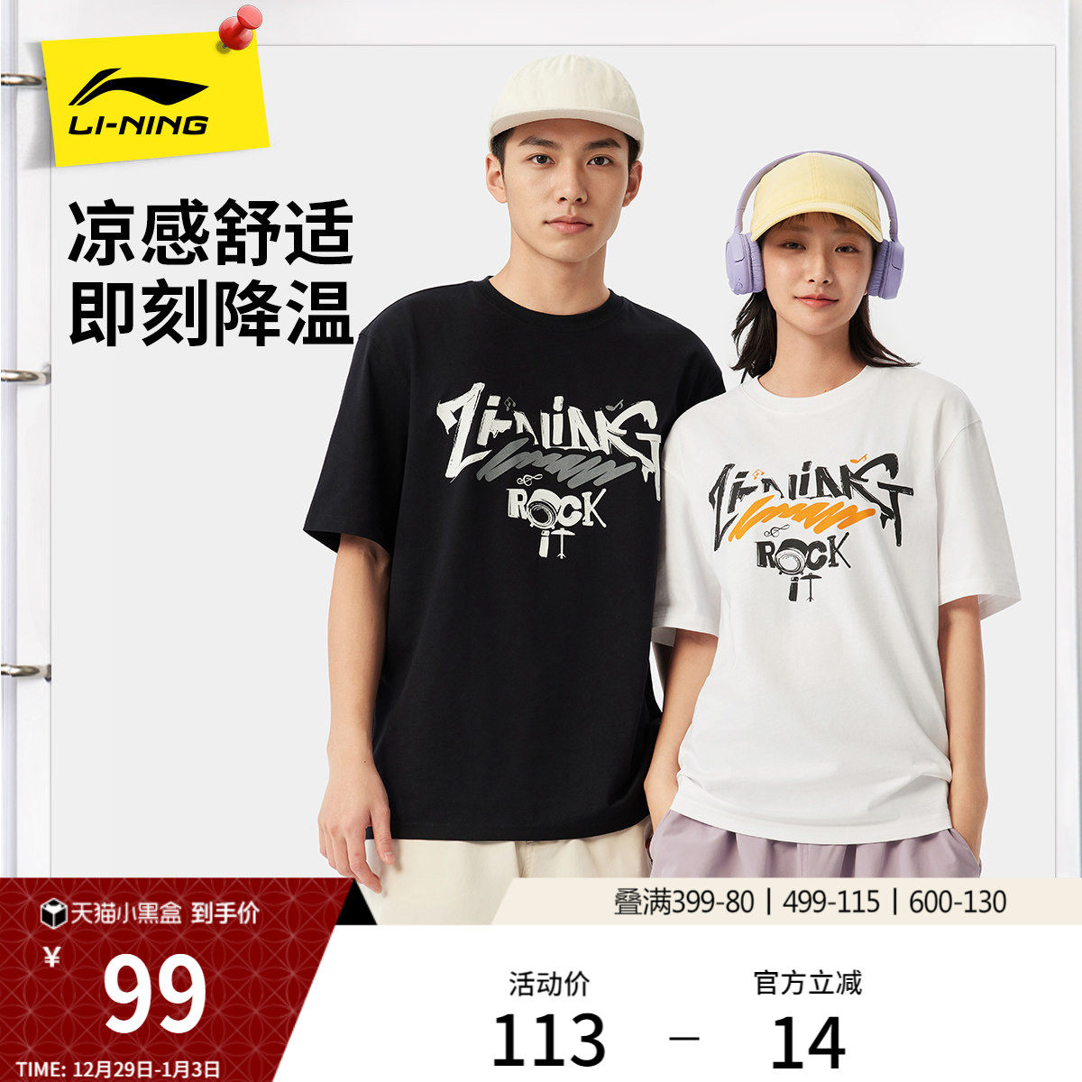 李宁短袖男夏季官方新款圆领半袖情侣休闲印花上衣针织运动T恤女