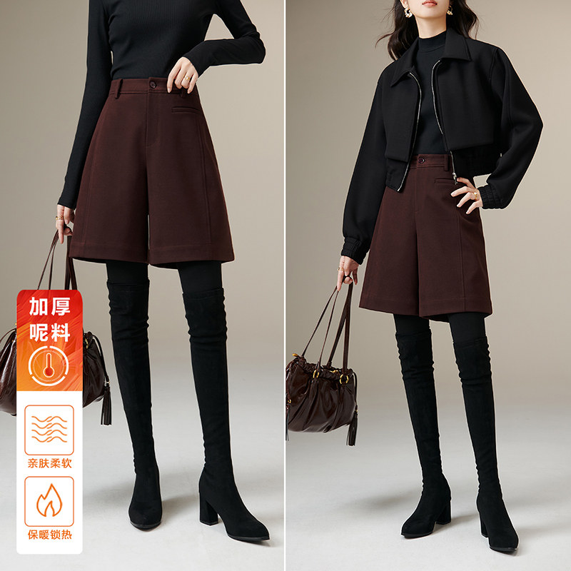 晚白2025年秋冬新款经典简约高腰靴裤利落显瘦时尚百搭休闲短裤女