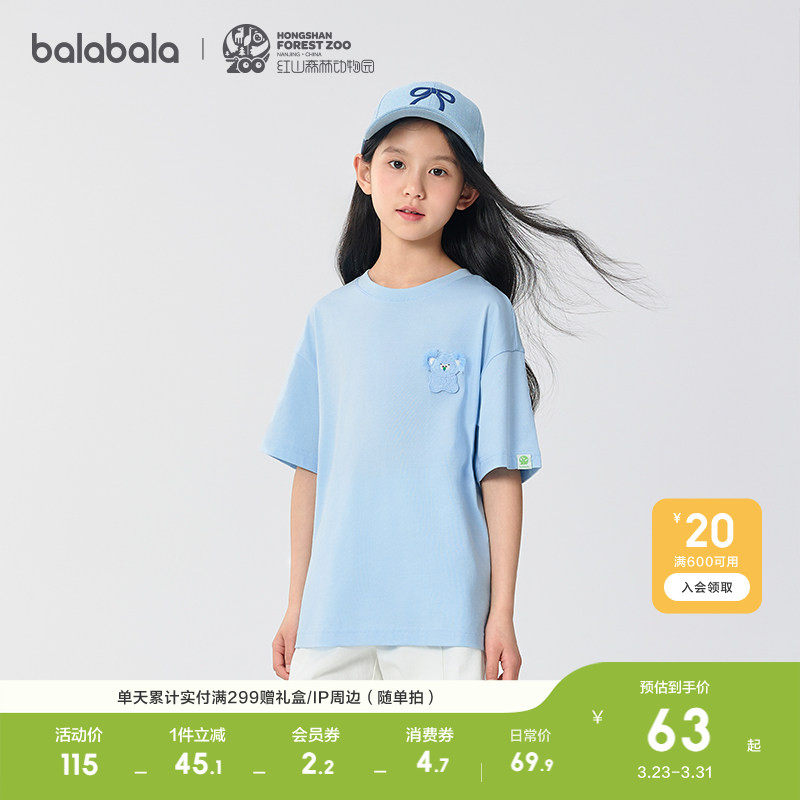 【红山森林动物园】巴拉巴拉童装儿童短袖T恤男女童轻薄夏装速干