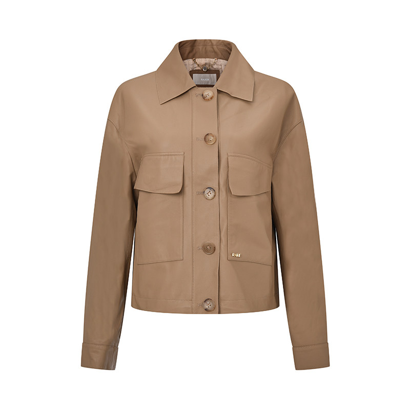 RARE威雅女装 秋冬新款女士短款外套卡其色真皮皮衣RR2246120654