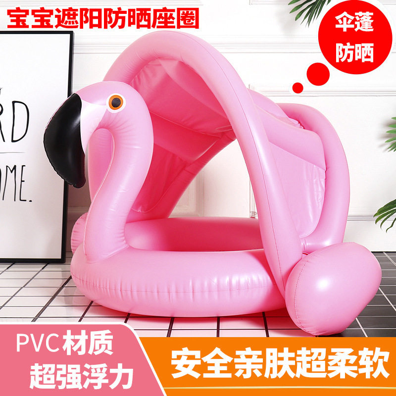 儿童游泳圈带遮阳蓬粉天鹅座圈婴儿充气白天鹅带蓬游泳圈裤兜泳圈