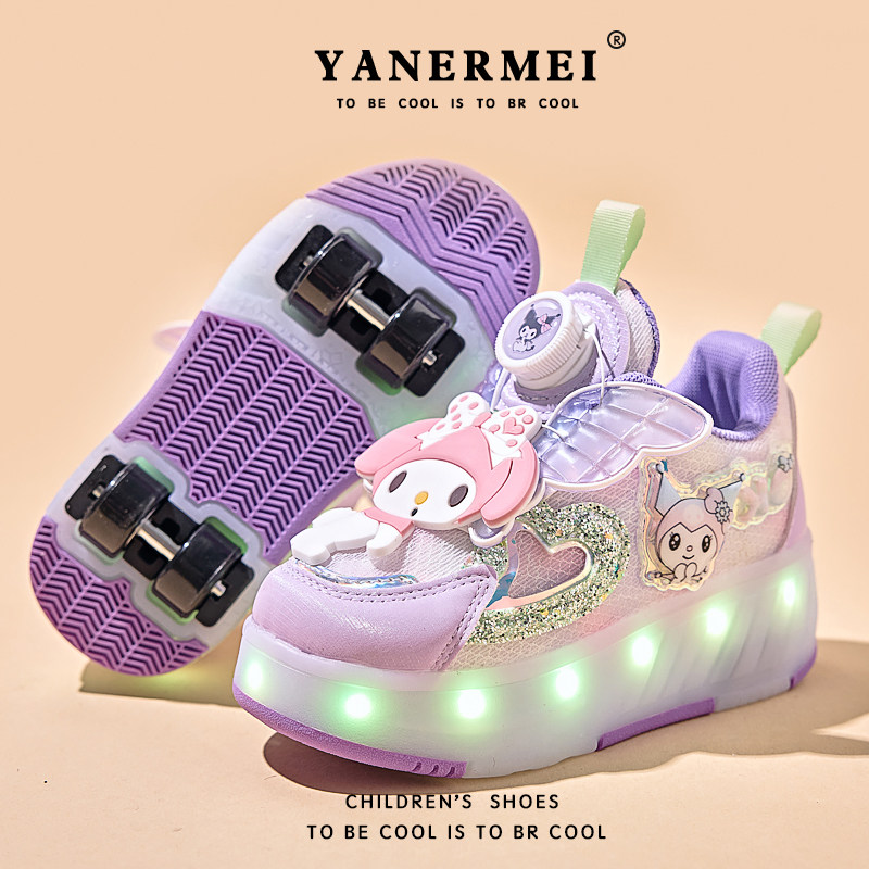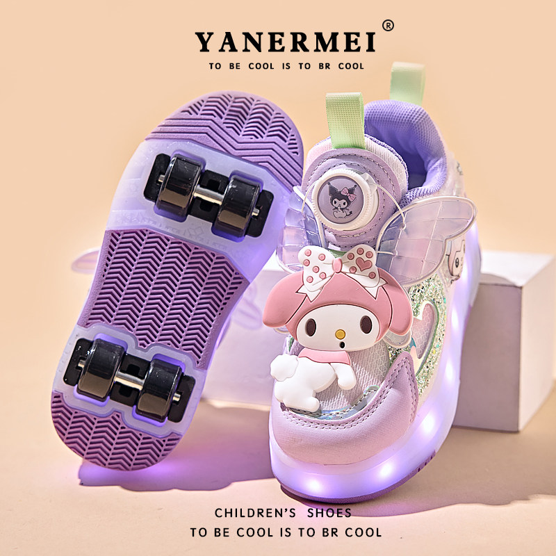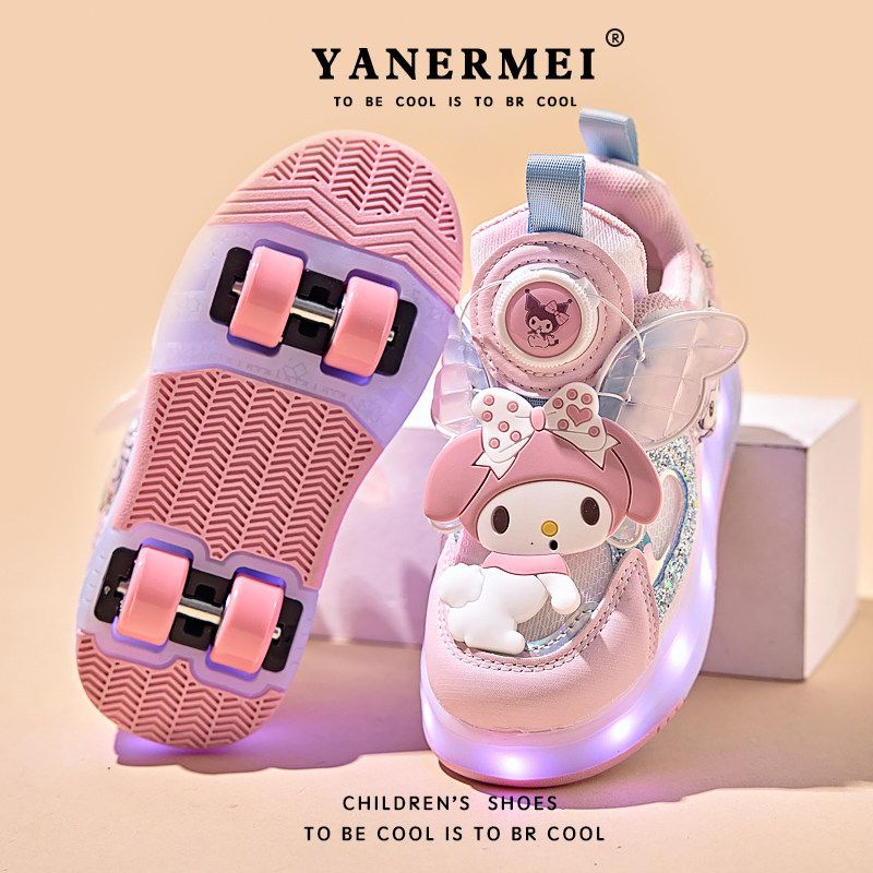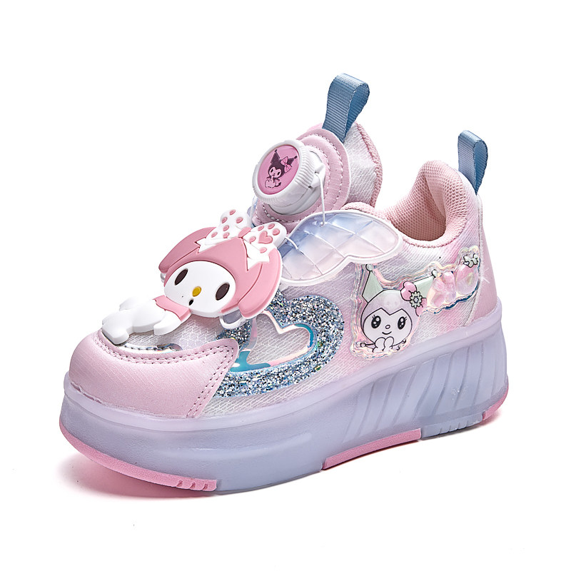天使美乐蒂女童闪灯网面暴走鞋儿童两穿四轮轮滑运动鞋溜冰儿童鞋