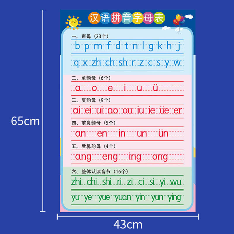 汉语拼音字母表挂图墙贴幼小衔接一年级声母韵母训练儿童学习神器