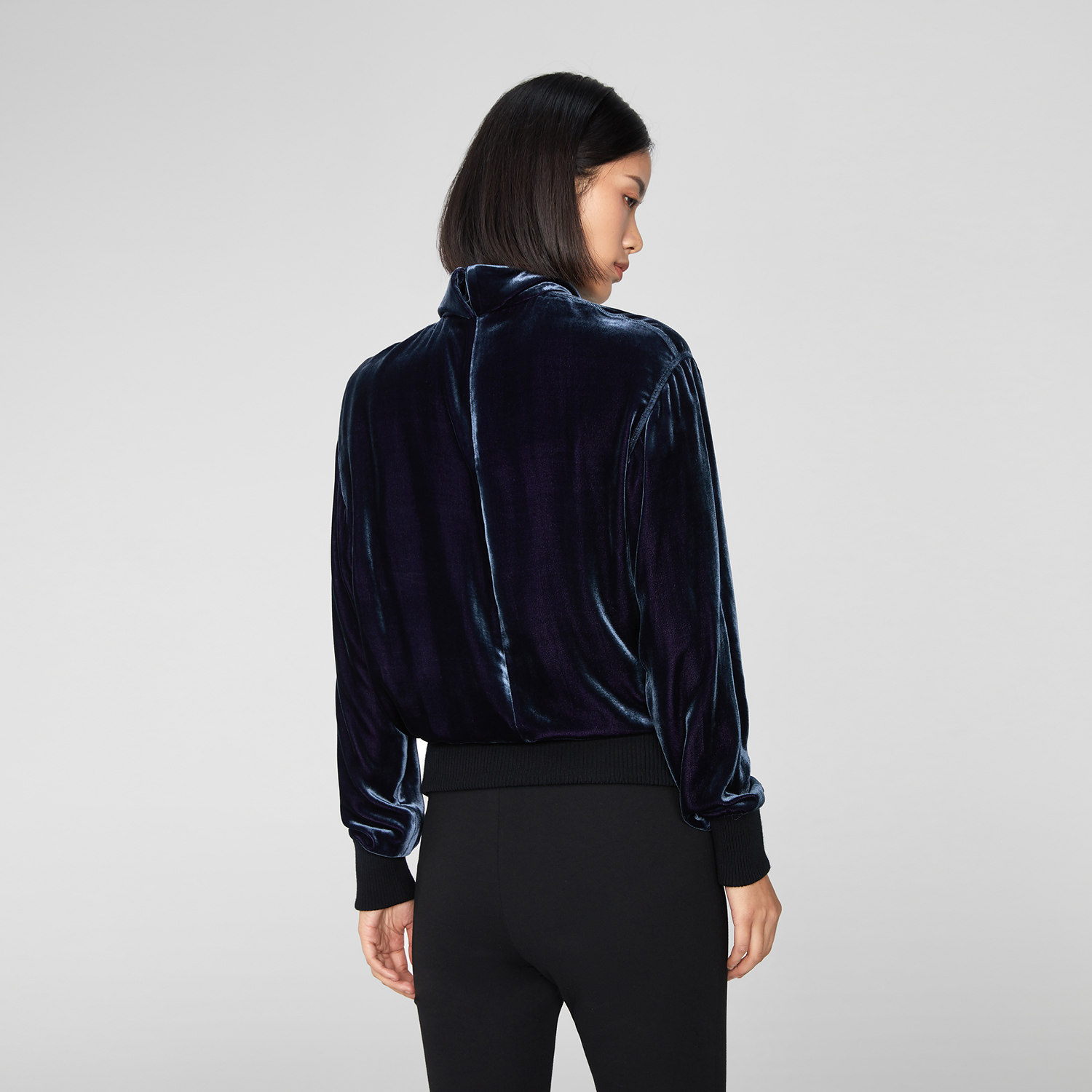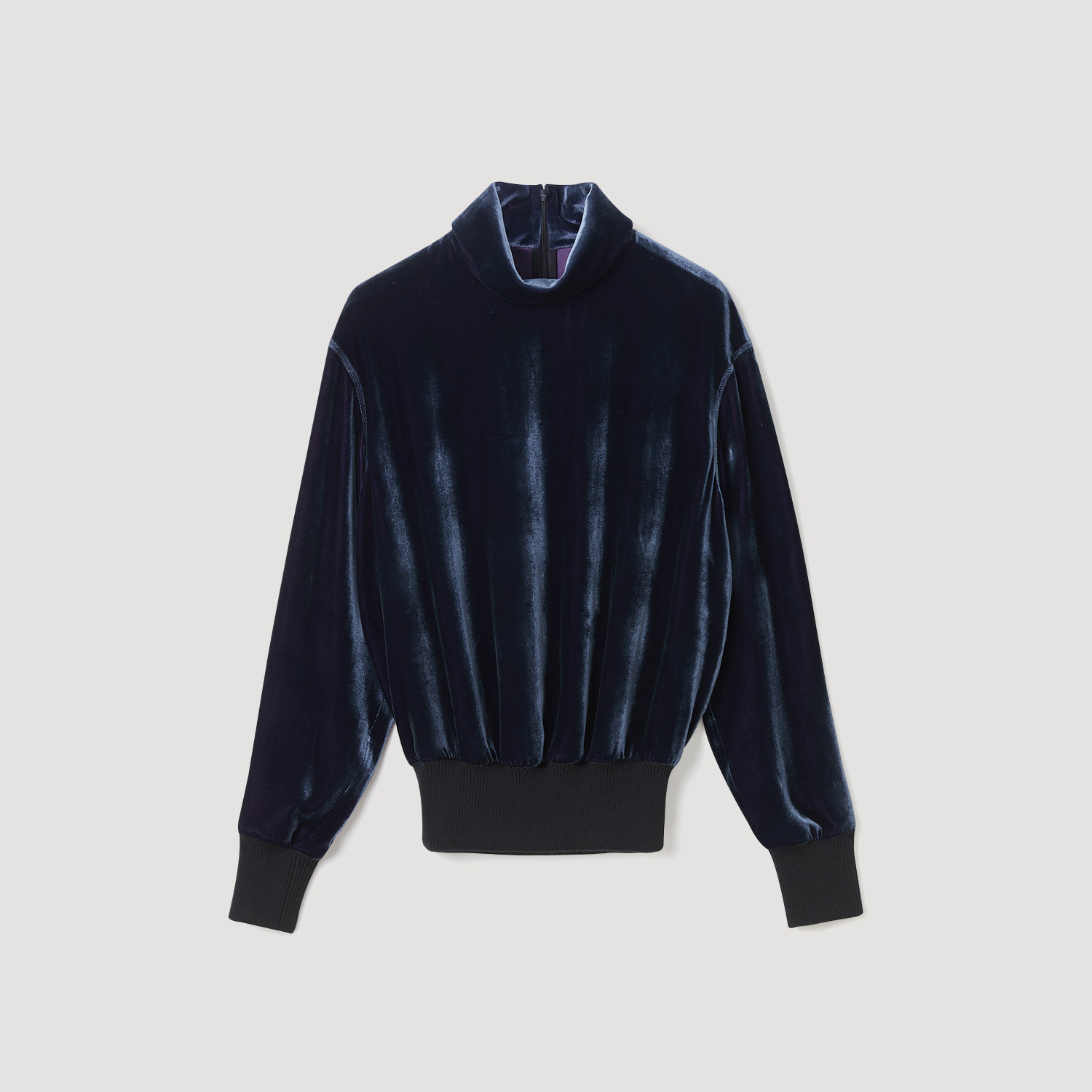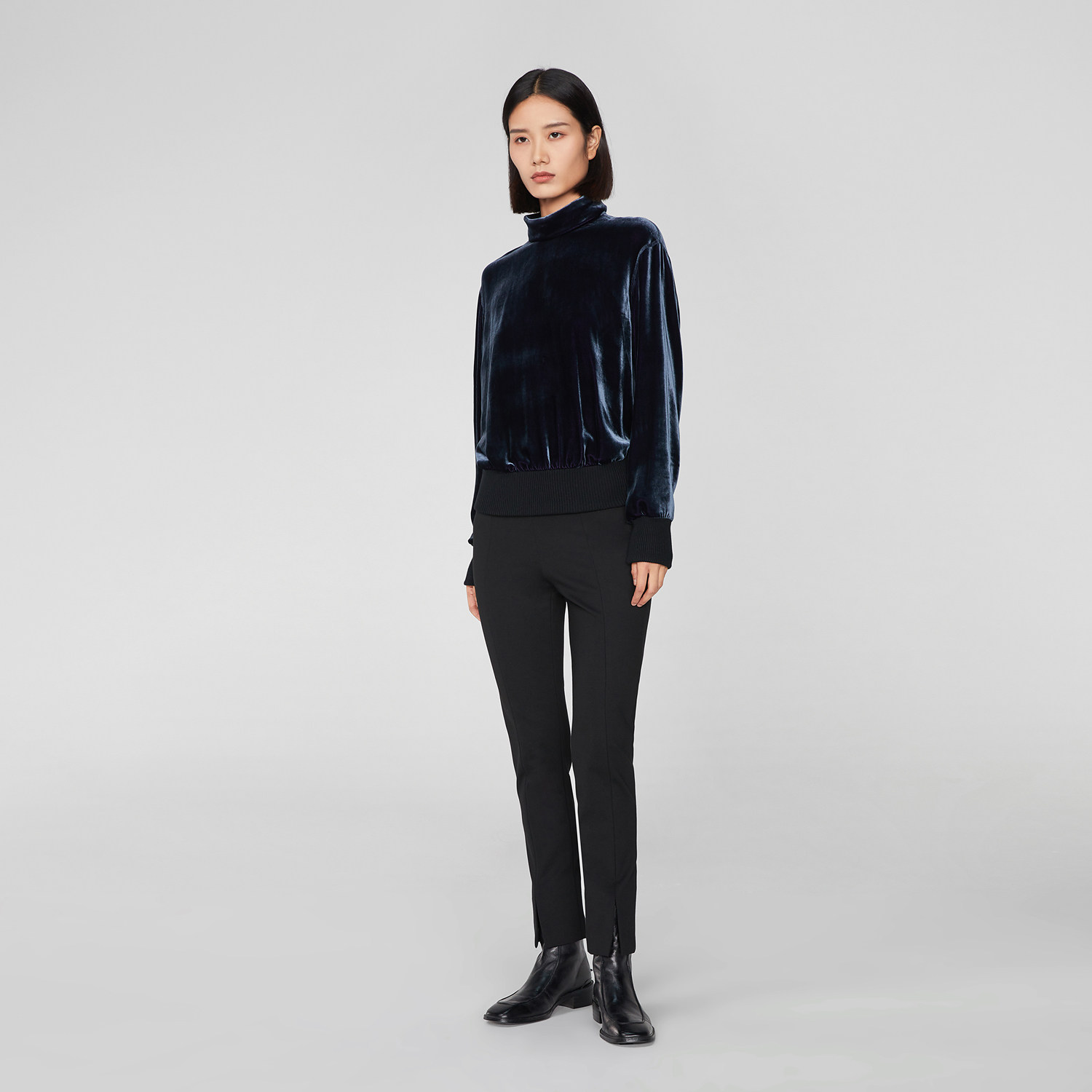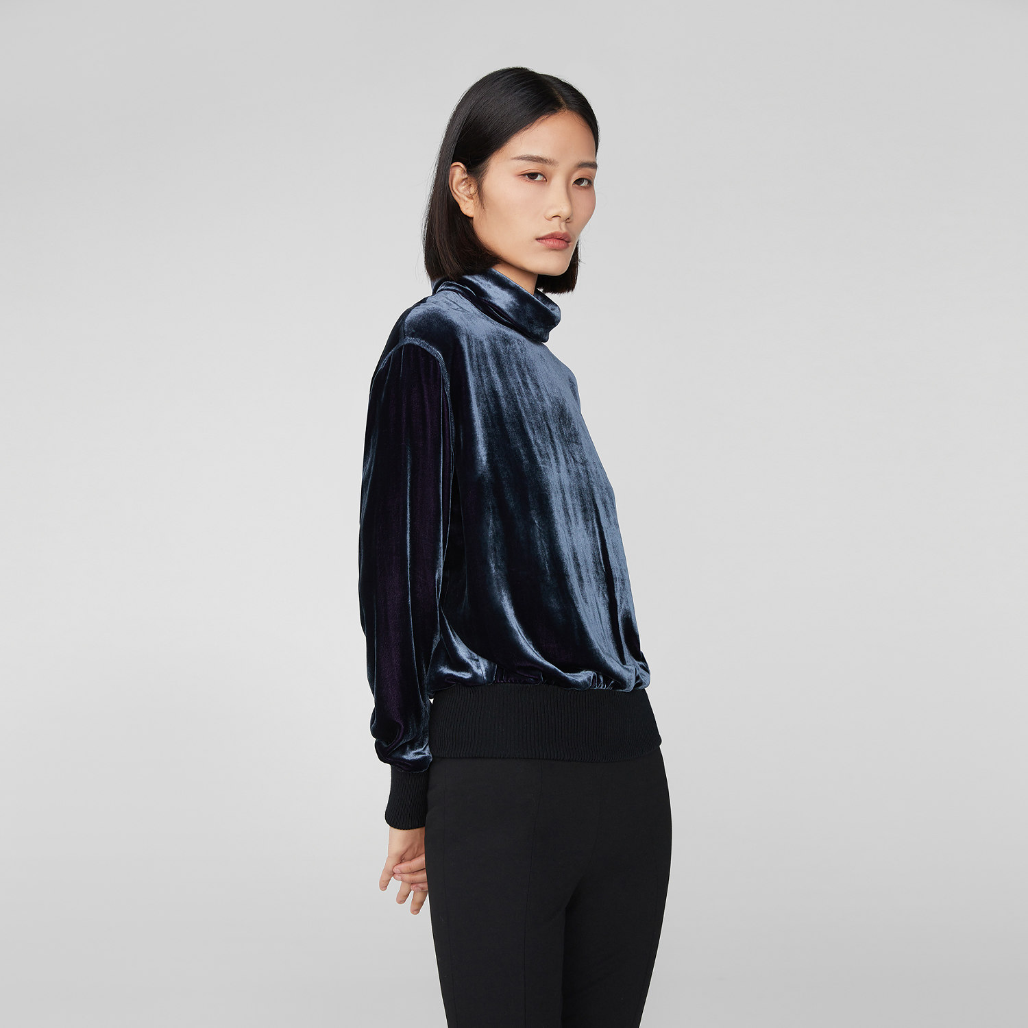 精致丝绒 罗纹镶拼 半高领设计