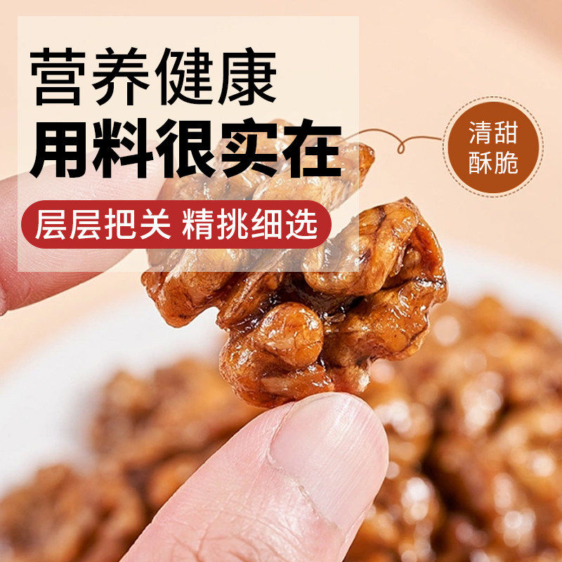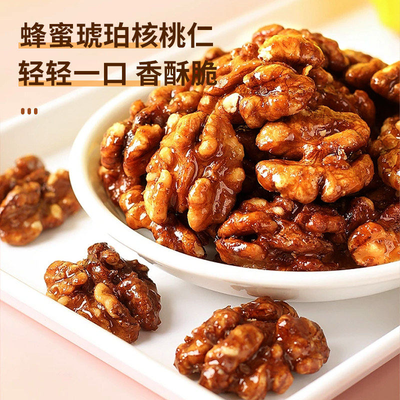 琥珀核桃仁500g净重芝麻蜂蜜味新鲜熟纸皮核桃肉酥脆坚果零食散装