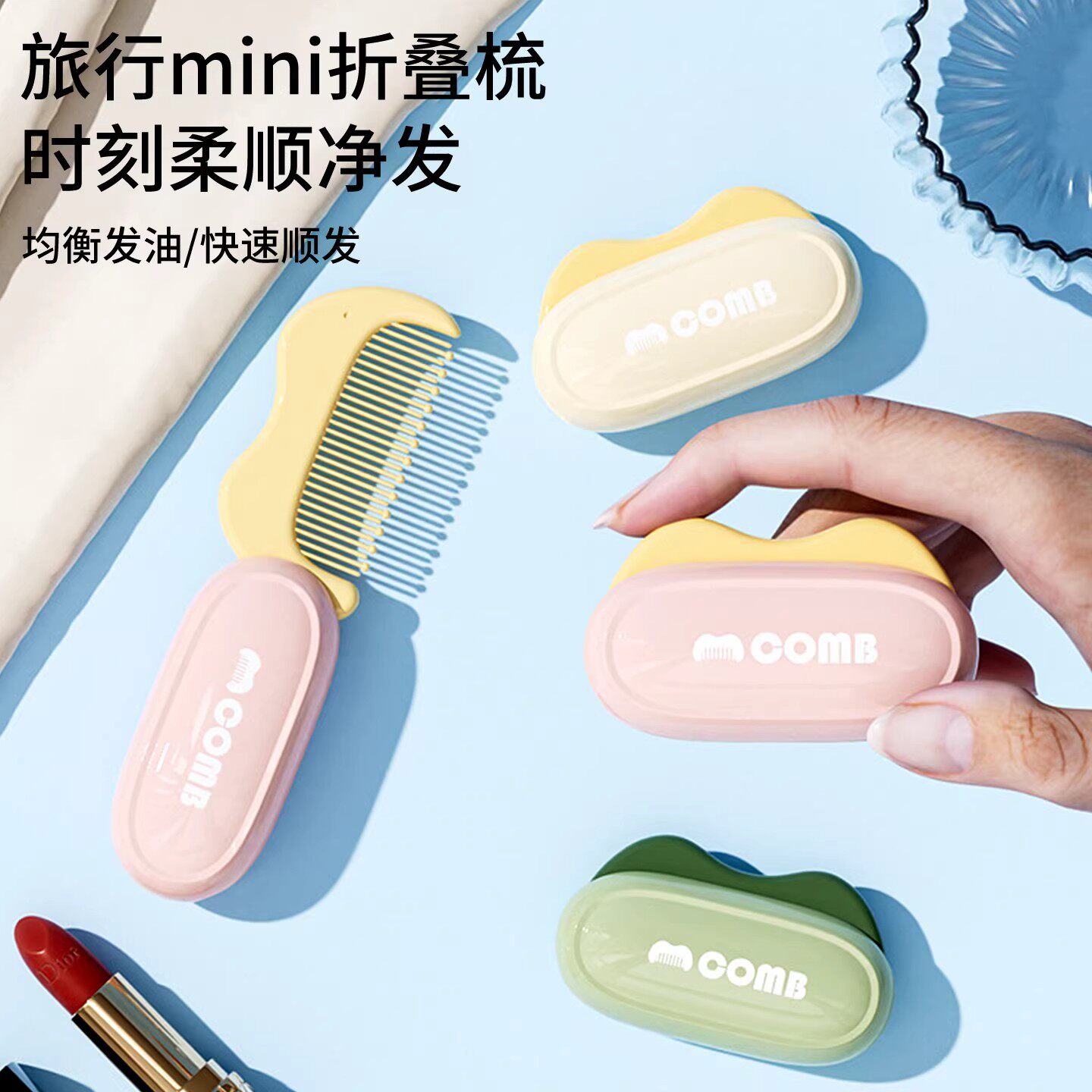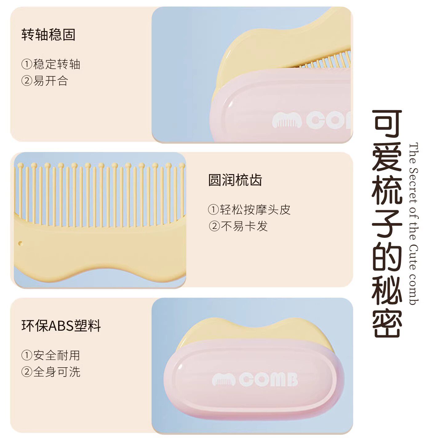 折叠梳子随身便携迷你梳子女士直发卷发梳软齿塑料蓬松可爱宝宝梳