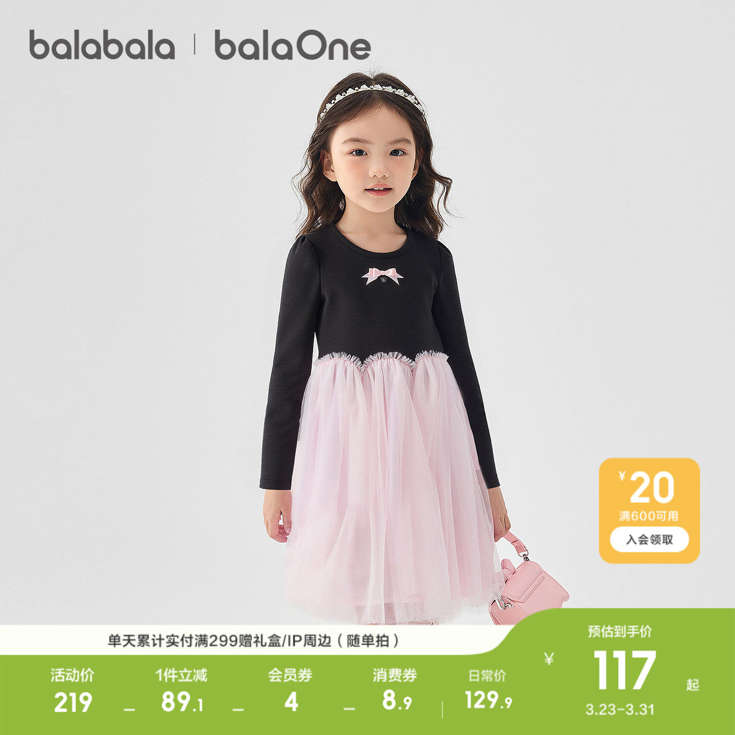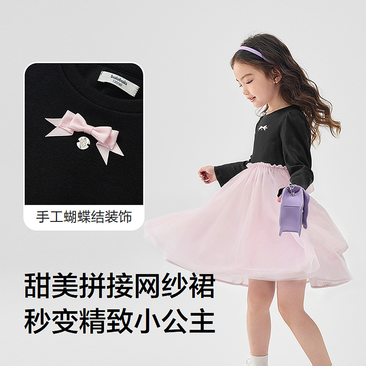 【balaOne】巴拉巴拉童装女童连衣裙2025新款春装网纱裙甜美洋气