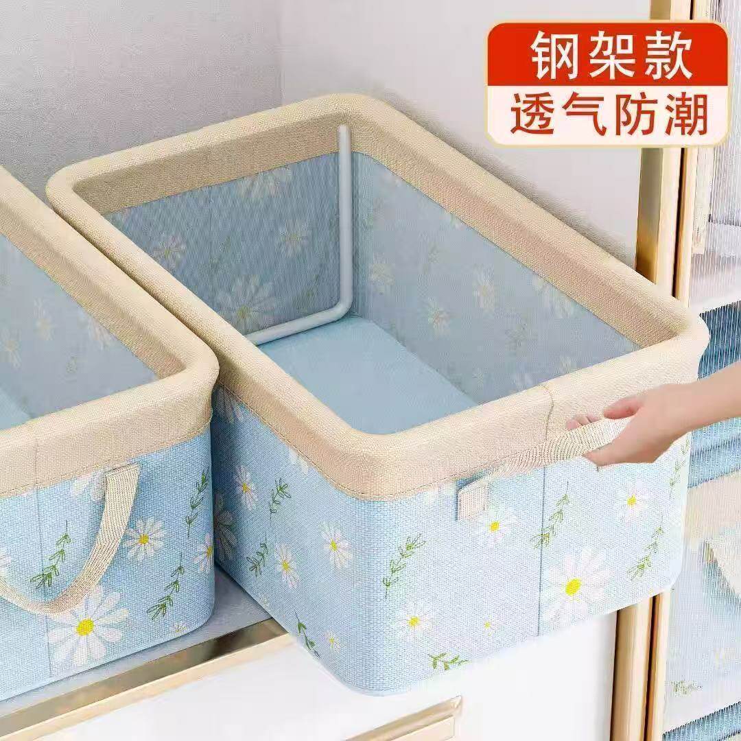 棉麻衣柜分层神器衣服收纳箱水洗家用裤子整理盒筐布艺折叠储物箱