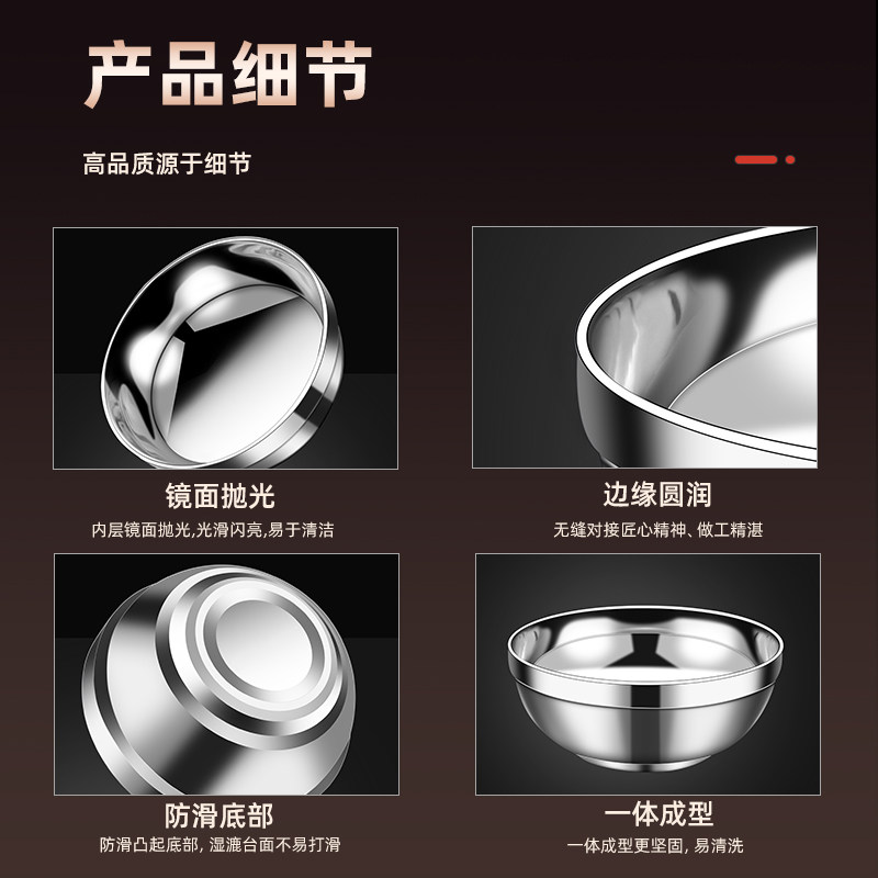 不锈钢碗食品级汤碗家用饭碗儿童小碗加厚铁碗个人专用双层碗防烫