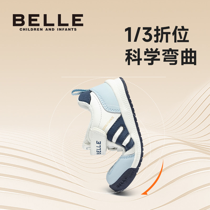 百丽童鞋26春季新品学步鞋男童低帮板鞋女童轻便魔术贴休闲宝宝鞋