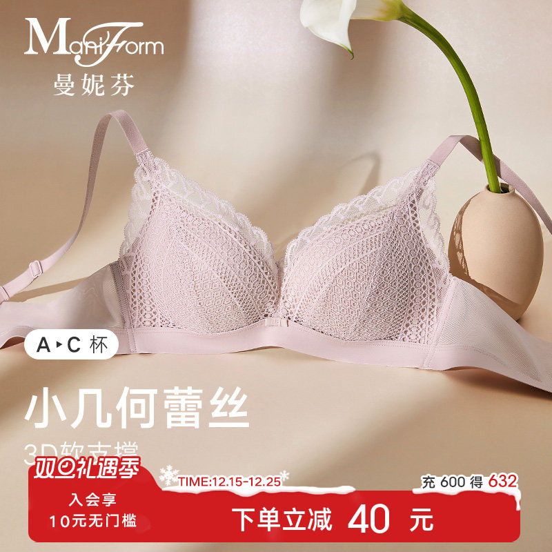 曼妮芬舒适无钢圈聚拢文胸性感蕾丝稳定包容内衣女士软支撑胸罩