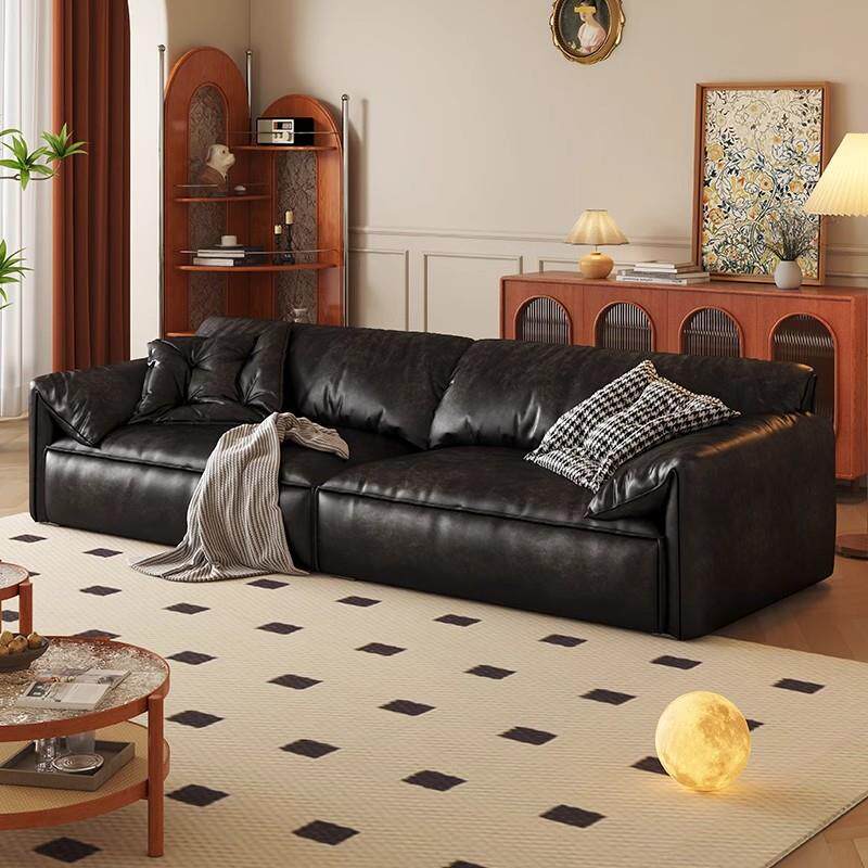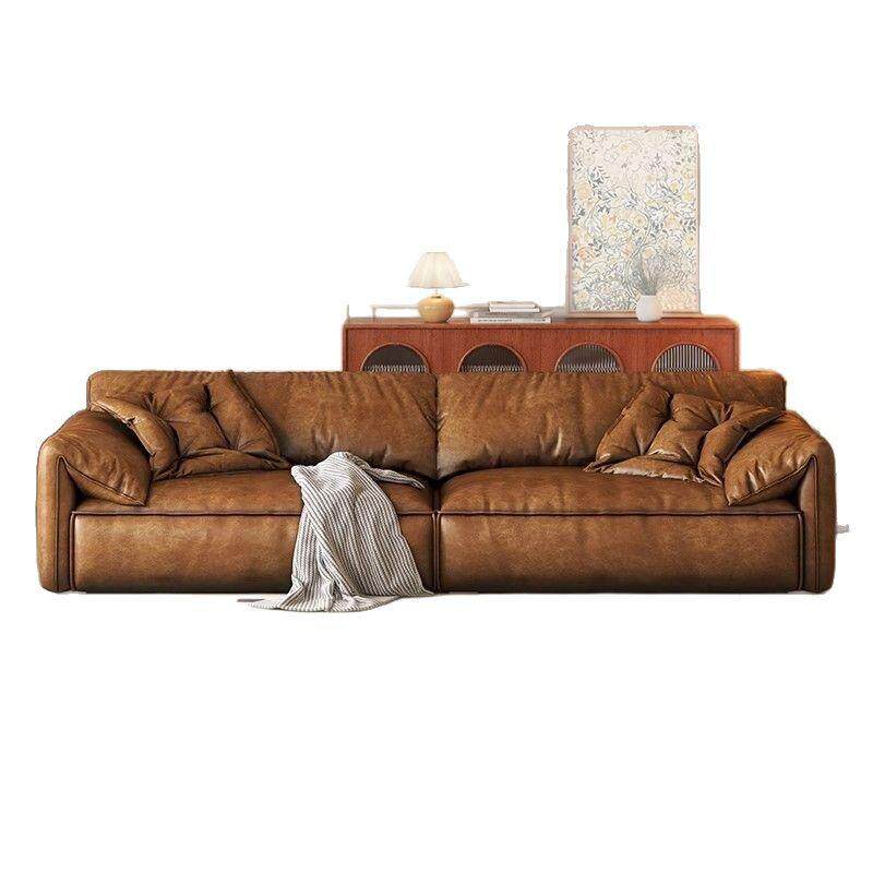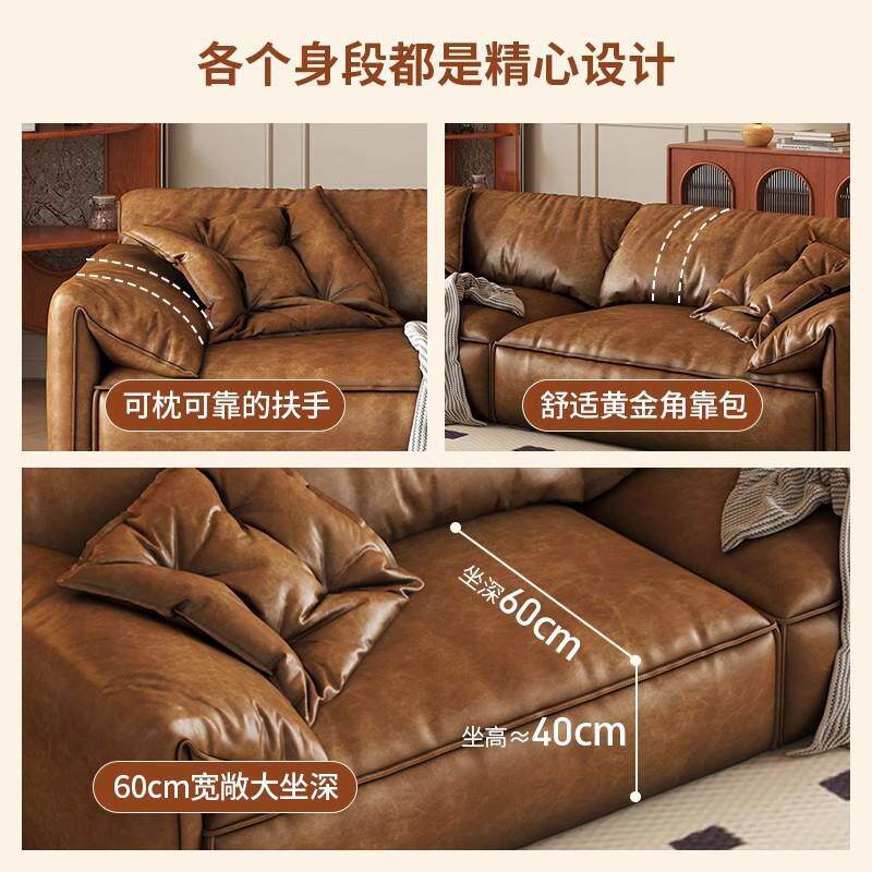 复古风大象耳朵皮沙发皮艺沙发客厅小户型直排复古云朵油蜡皮奢华