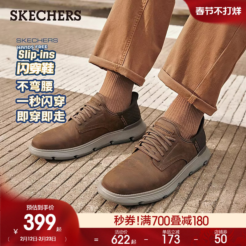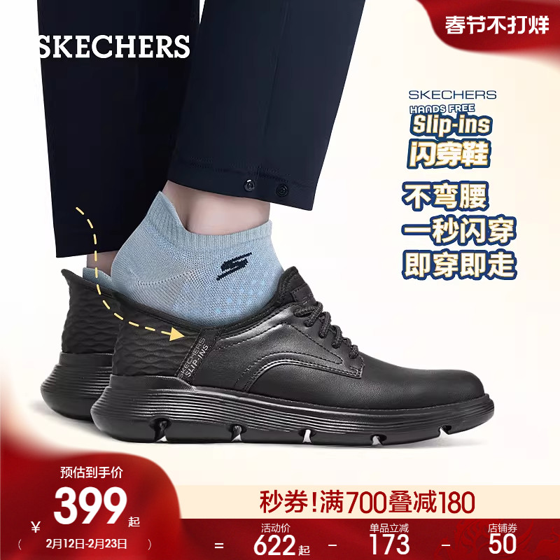 斯凯奇闪穿鞋春季新款男子舒适商务鞋一脚蹬休闲鞋通勤皮鞋工作鞋
