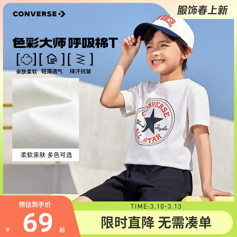 匡威儿童装男童短袖T恤2026新款夏季女童中大童上衣纯色半袖透气