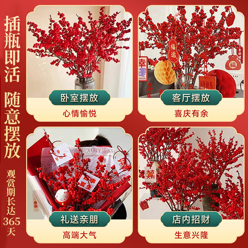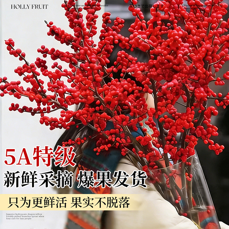 北美冬青红果鲜枝银柳年宵花卉绿植室内水培植物鲜花切枝盆栽真花