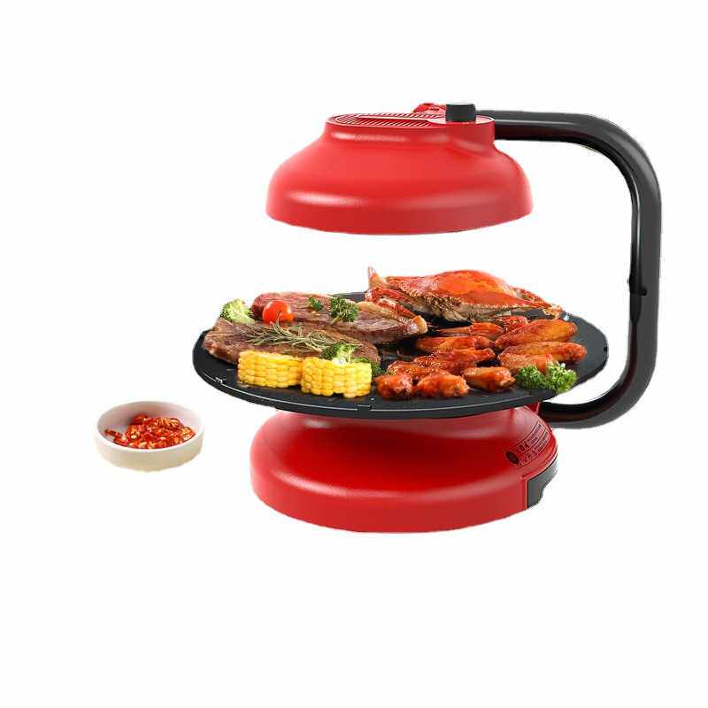 严选绿阳烧烤炉多功能室内电烤盘家用无烟不粘烤肉机自动旋转烤盘