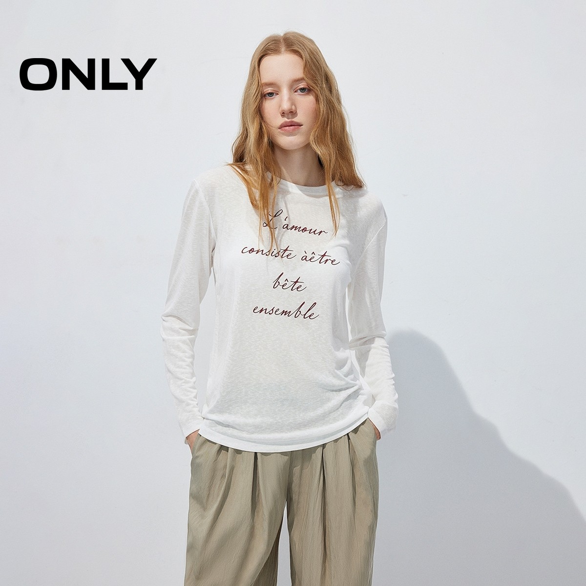 ONLY2026春季新款松弛透肤微廓形剪裁顺滑垂坠胶印莱赛尔T恤女