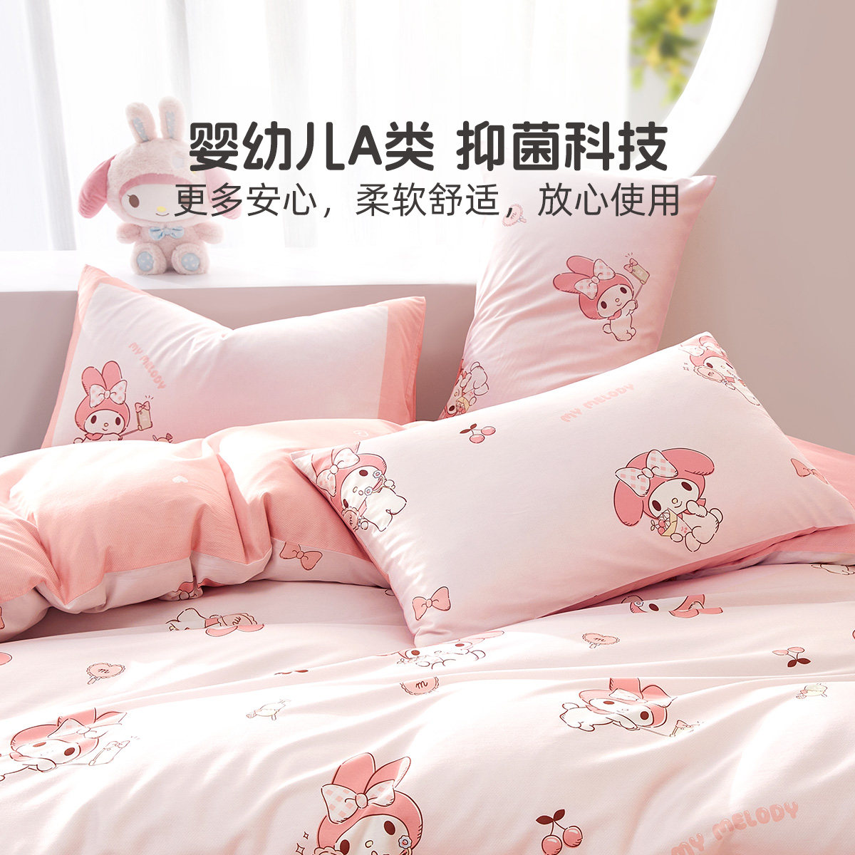 无印良品全棉四件套学生宿舍纯棉卡通儿童被套床单三件套床上用品