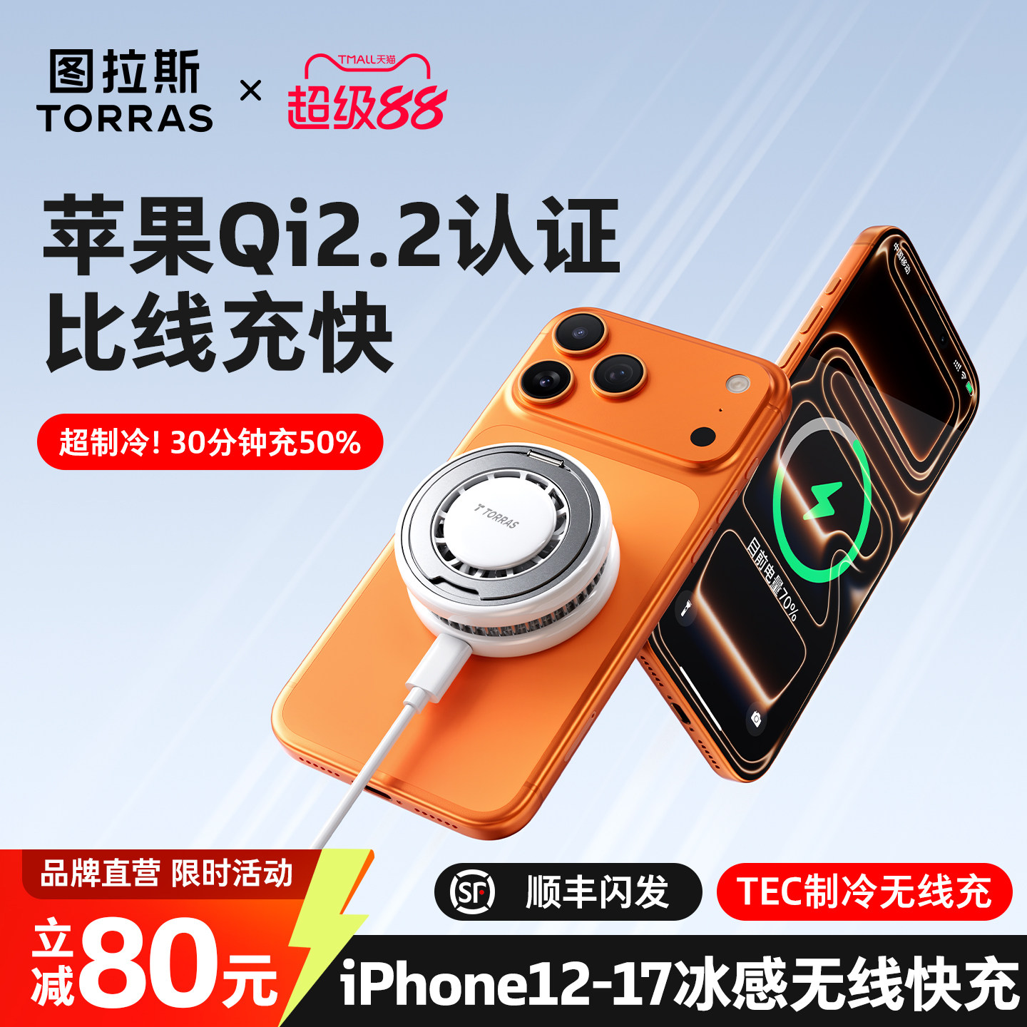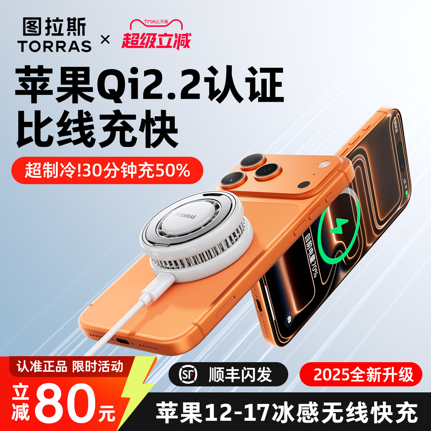 图拉斯快充小冰风制冷无线充适用苹果17充电器iPhone16ProMax手机散热magsafe底座磁吸背夹快充