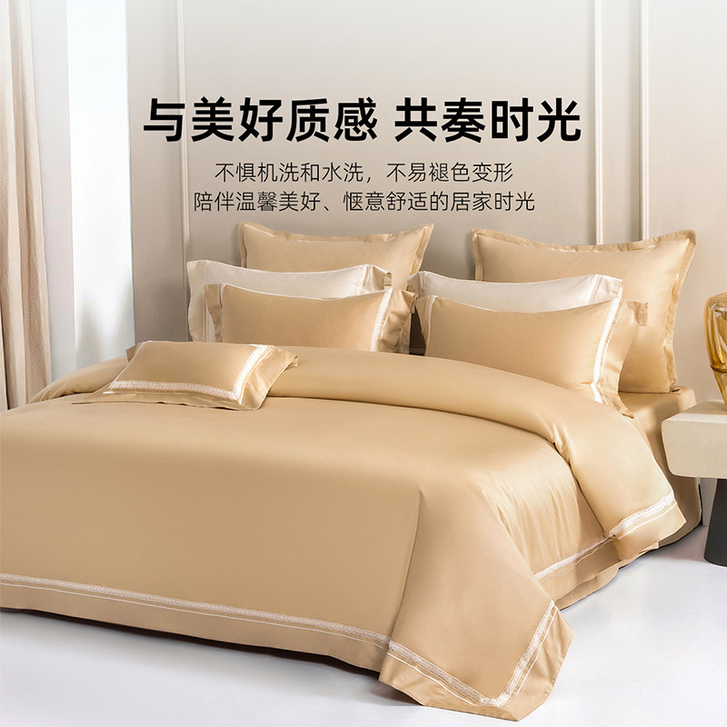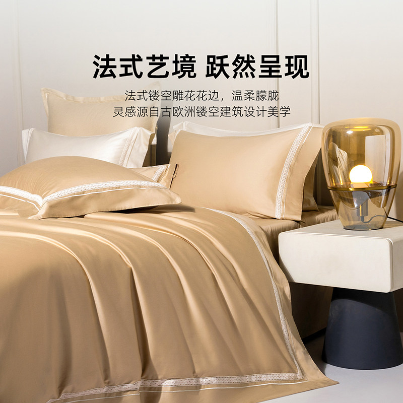 无印良品高级感床上四件套全棉纯棉双人被套床单笠轻奢床品三件套