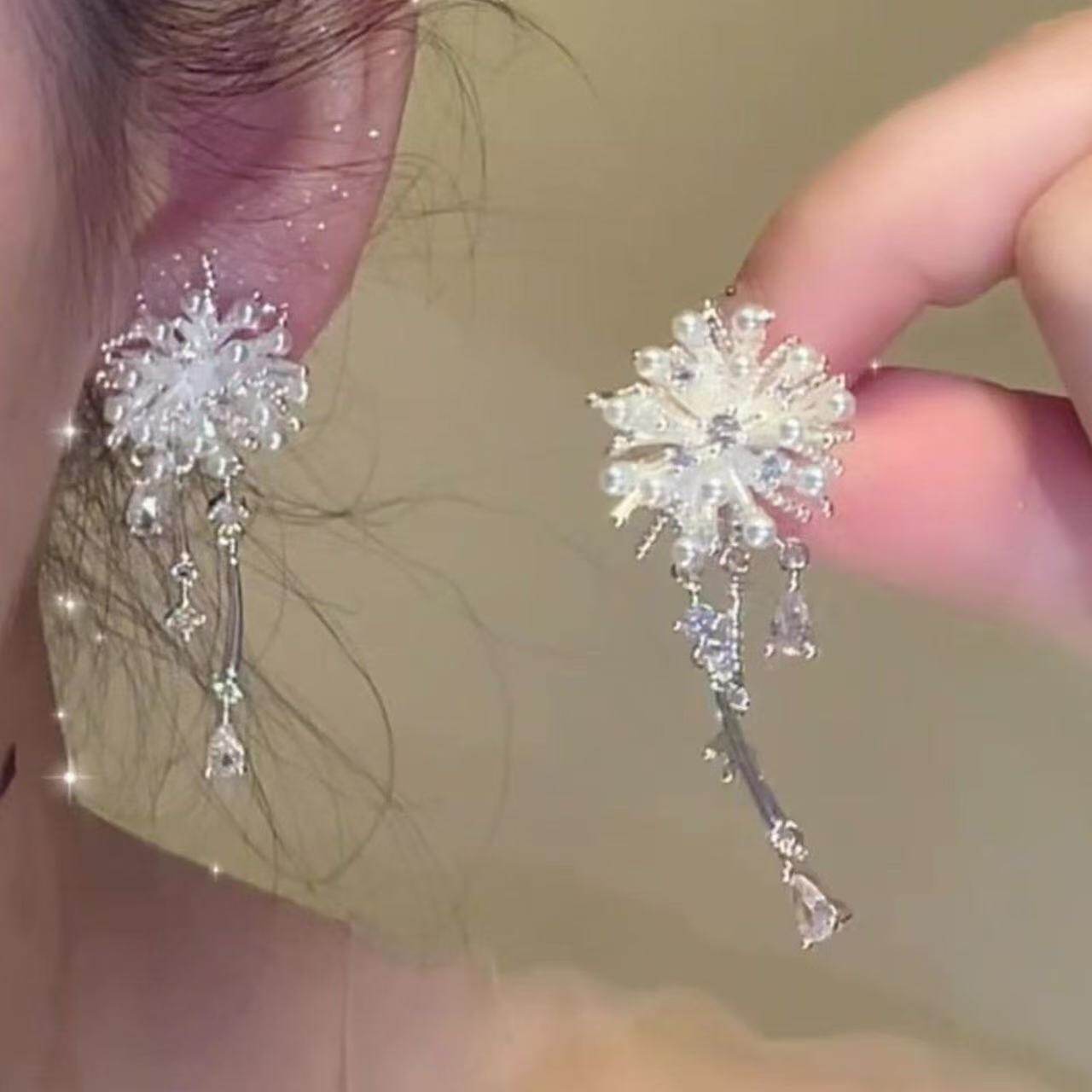 清冷感超仙烟花仿锆石流苏耳环2026新款爆款高级感独特漂亮耳钉女