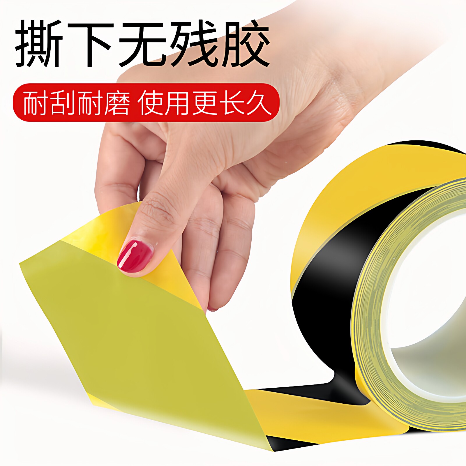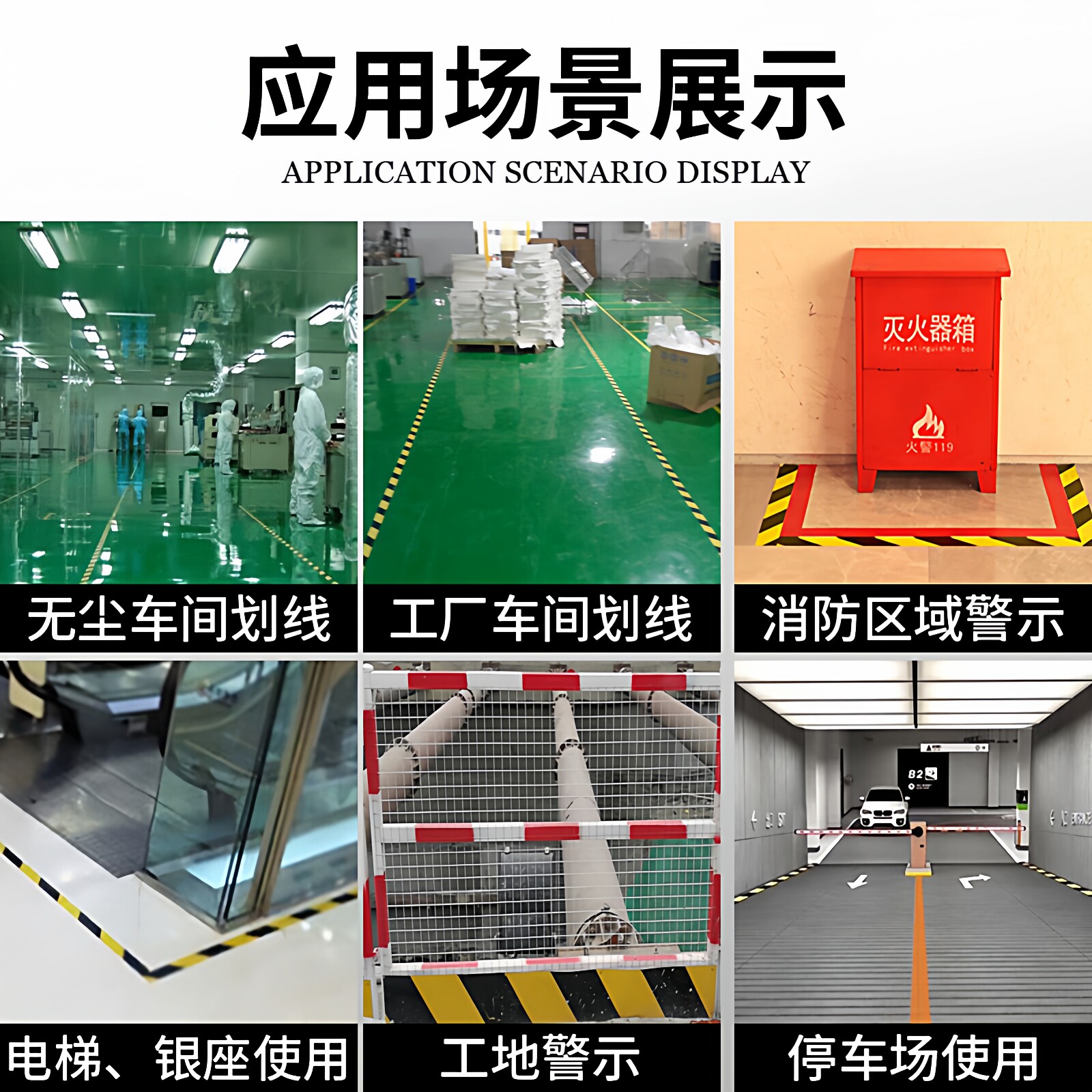 PVC警示胶带PP内芯管无尘车间洁净室专用黑黄斑马安全警戒划线地板胶红白黄色警戒地面标识贴