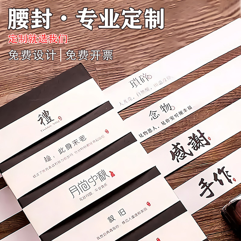 礼盒腰封定制礼品包装封套一次性标签不干胶印刷小批量印logo高档茶叶罐轻食沙拉水果蛋糕包装外卖纸质封条