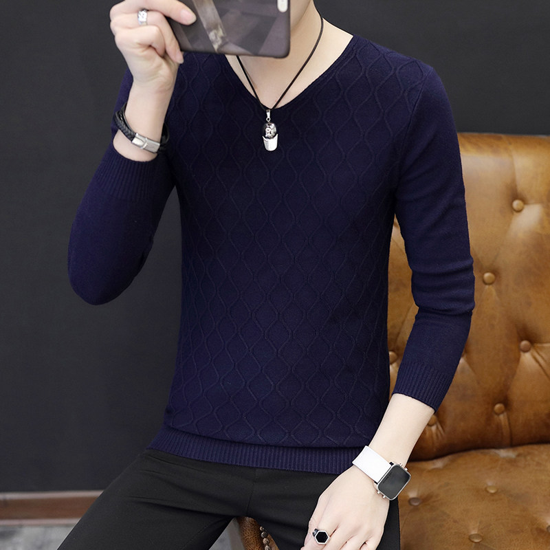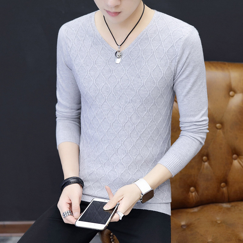 秋装新款男士V领打底衫韩版修身白色毛衣秋季薄款青年针织衫潮流