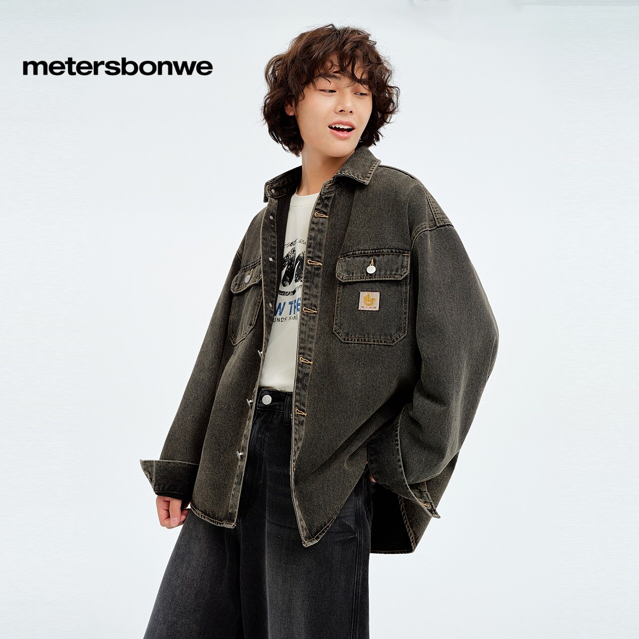 [商场同款]美特斯邦威牛仔衬衫男26春新户外工装复古洗水翻领外套