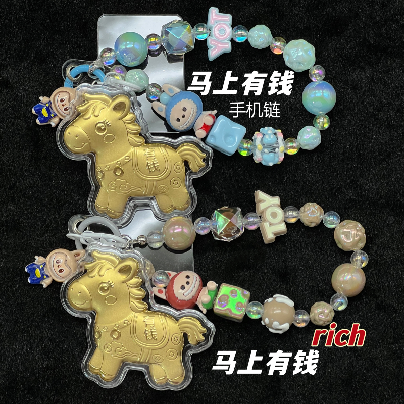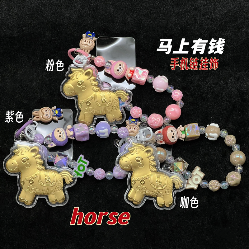 新款卡通马上有钱手机链挂件生肖马钥匙扣挂饰包包挂件饰品礼物