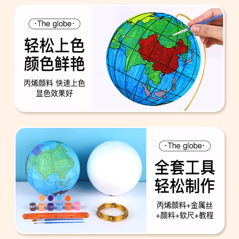 自制地球仪手工制作材料包diy泡沫球圆球学生初中生初一专用2026新款简易半成品大号空白模型地理半成品制作