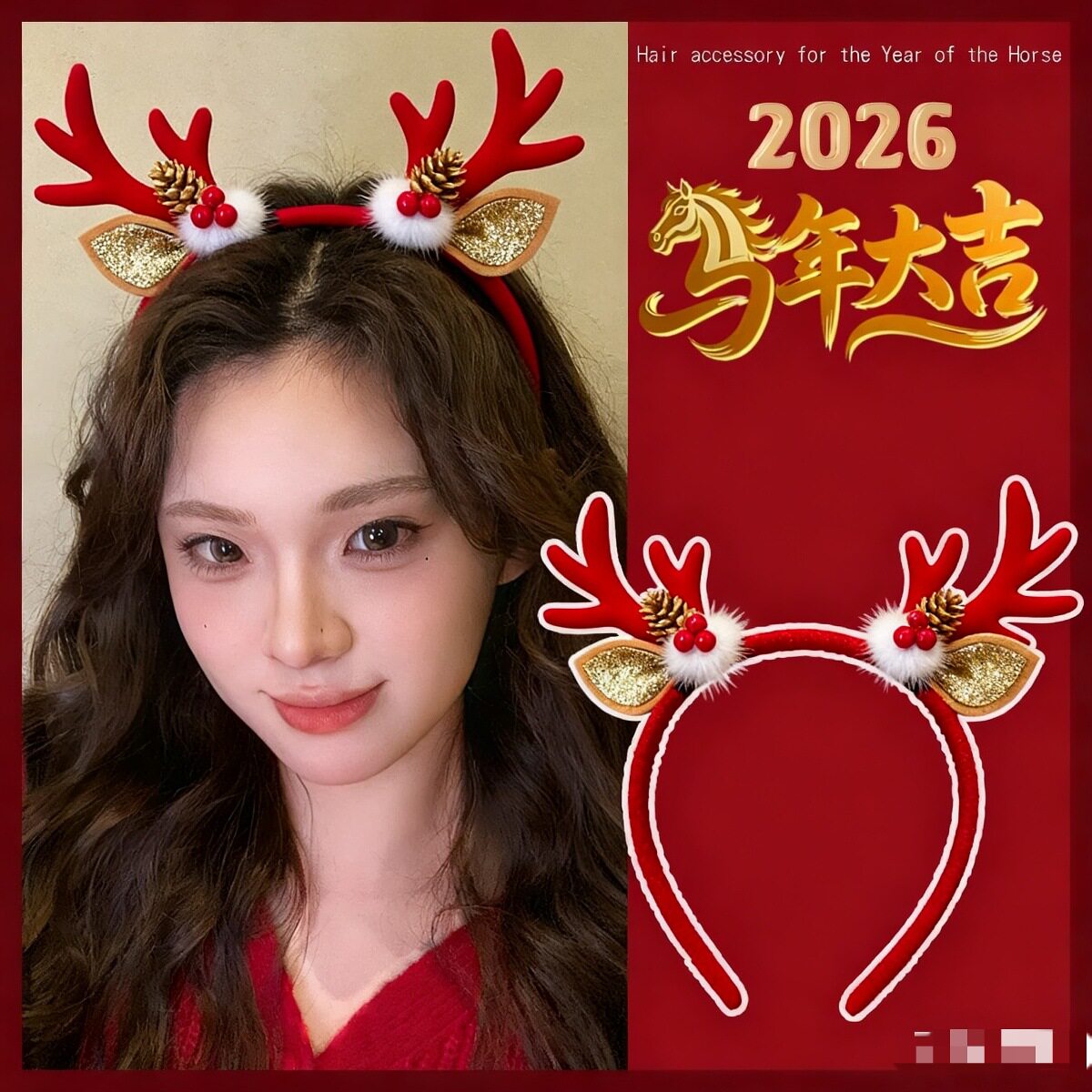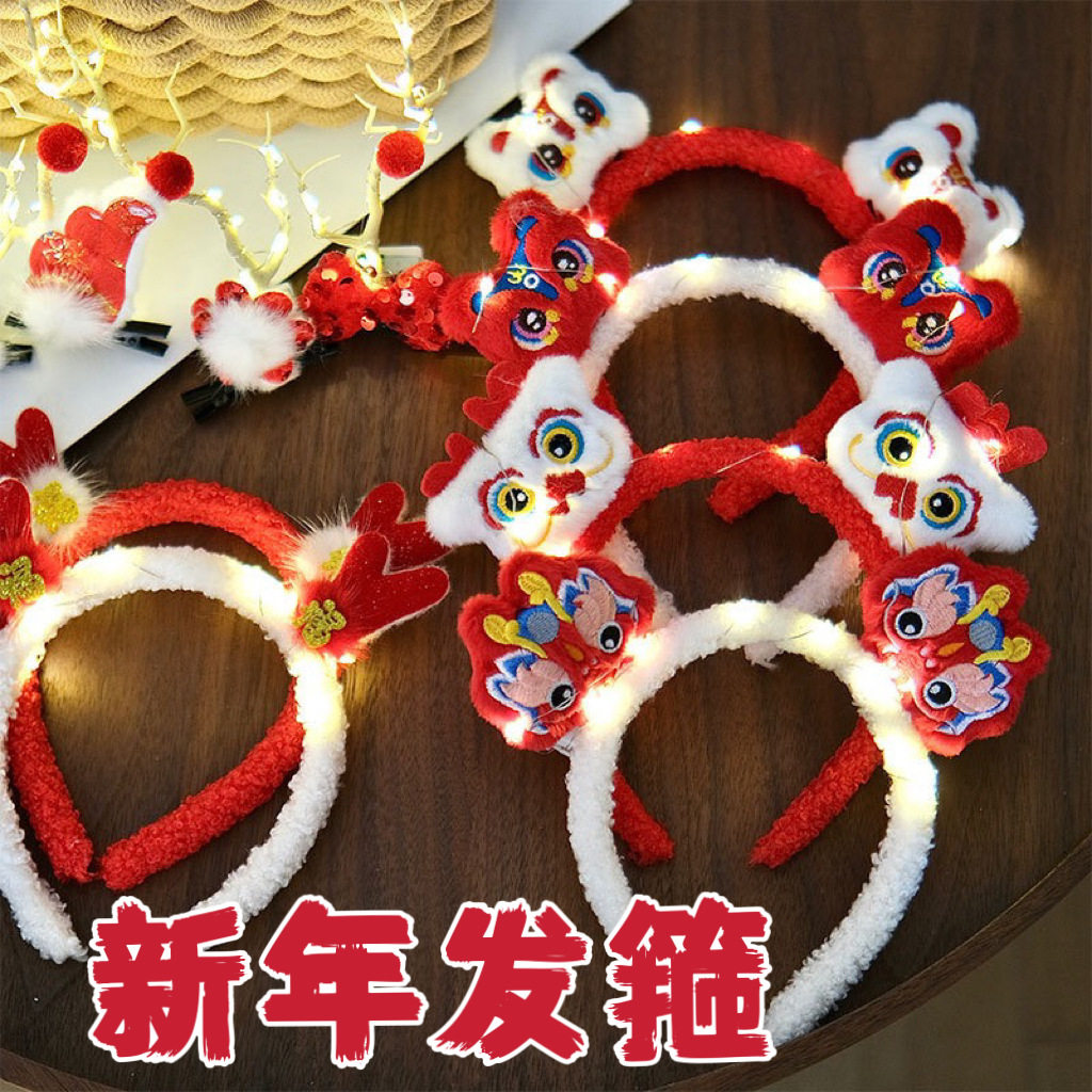 2026马年发箍新年创意发饰元旦年会活动发光头饰红色女童头箍新年