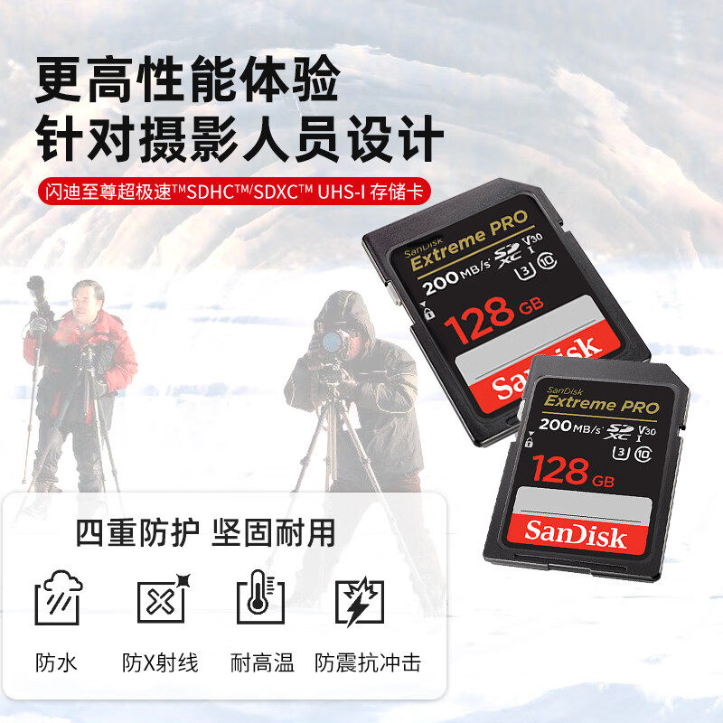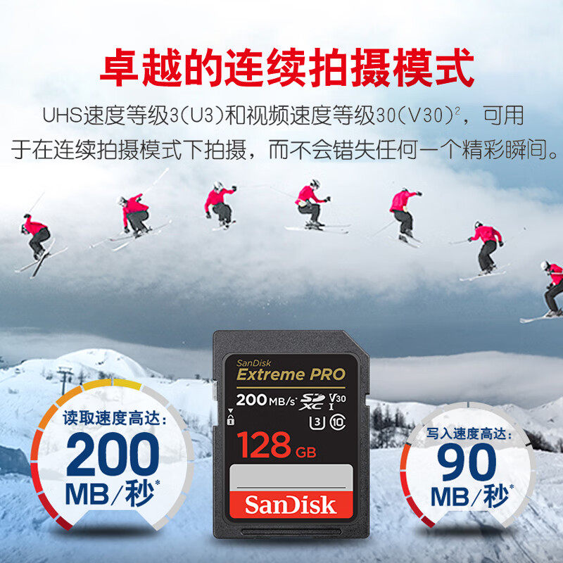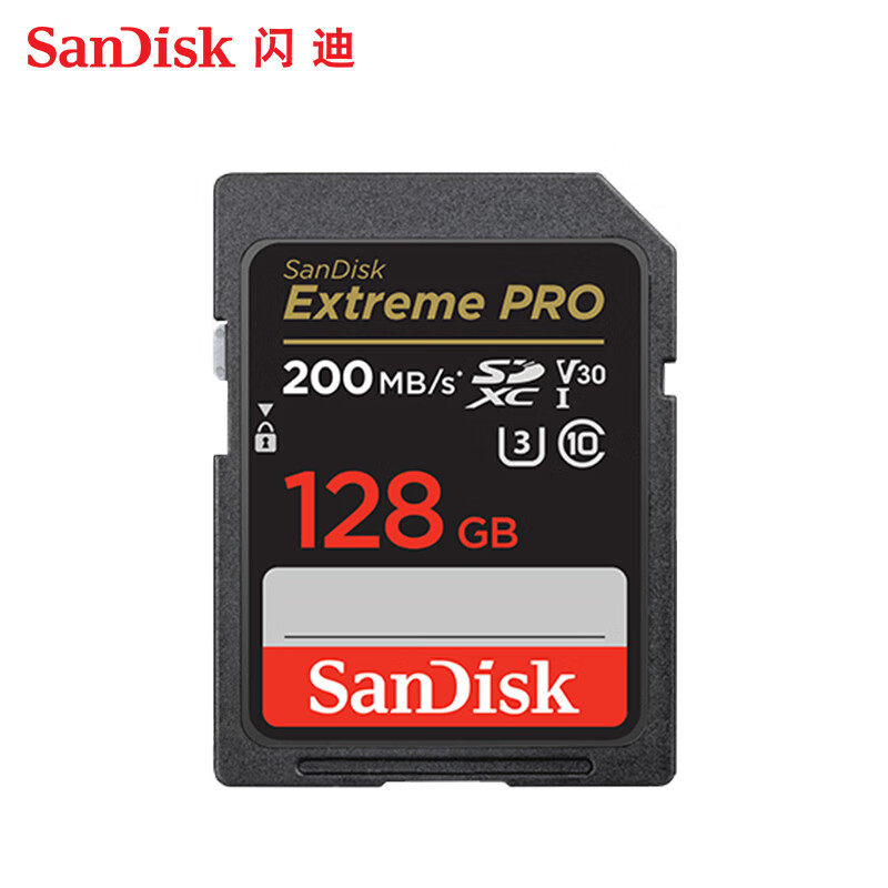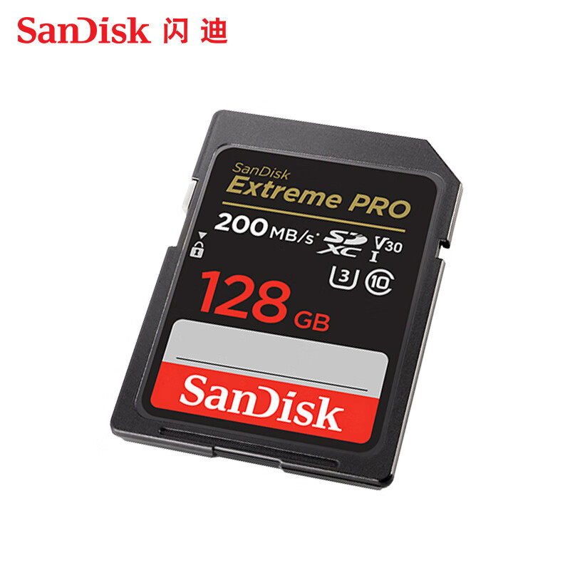 闪迪高速sd卡128g佳能相机内存卡200M/s V30索尼微单反存储卡256g