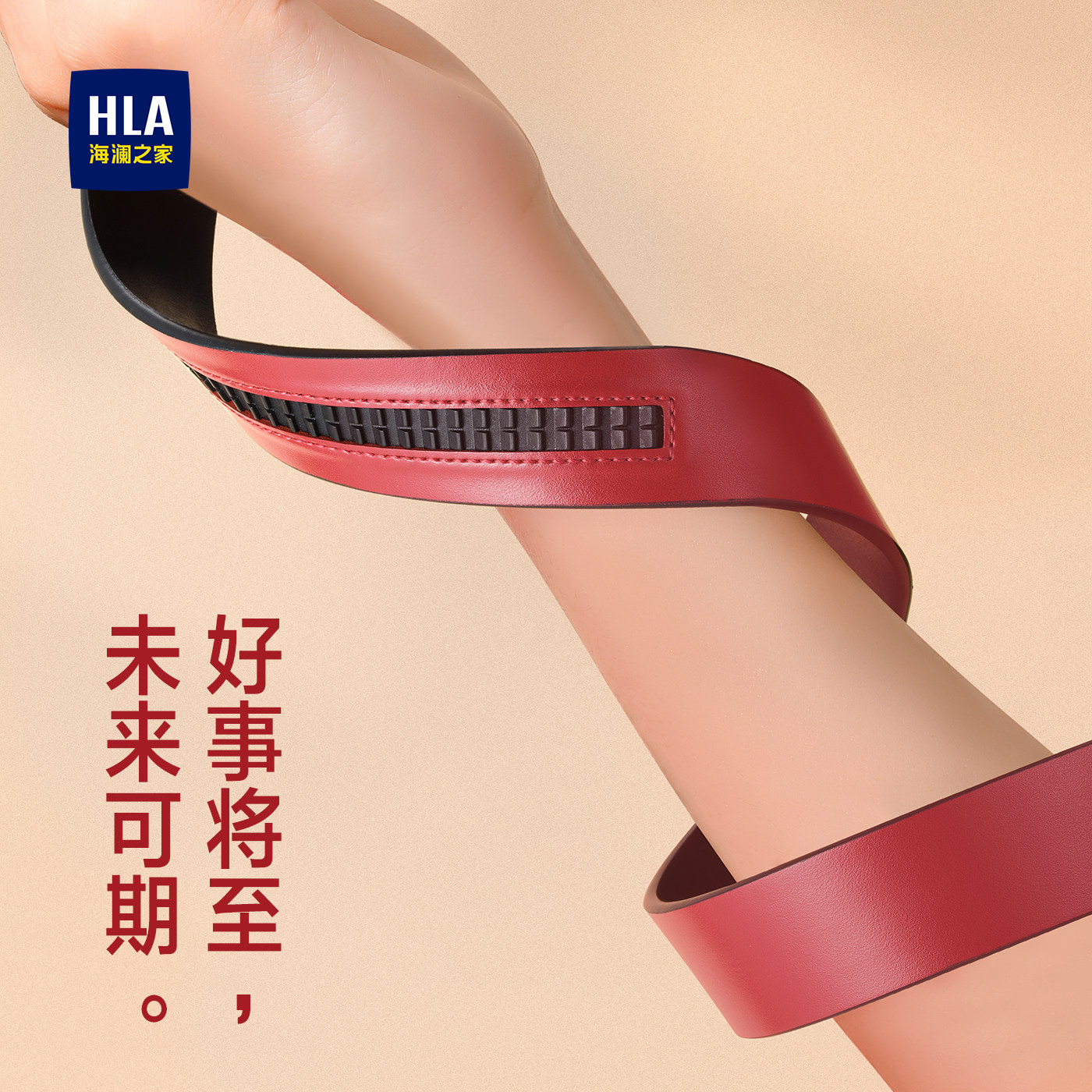 海澜之家皮带男士真皮自动扣红腰带本命年新年实用礼物年轻人裤带