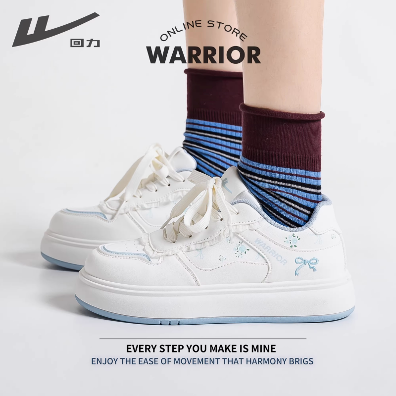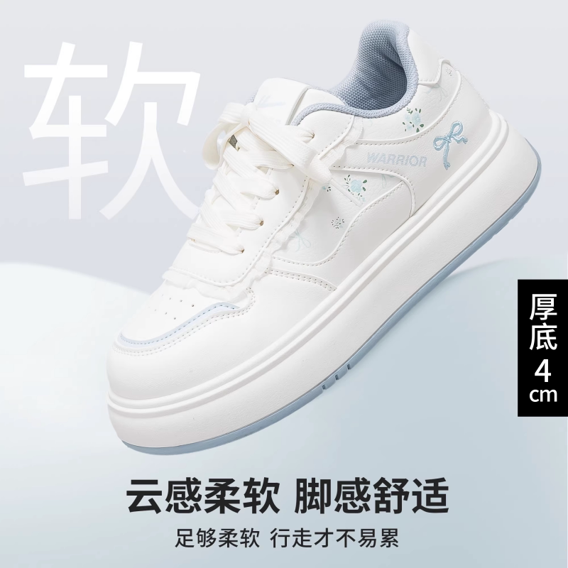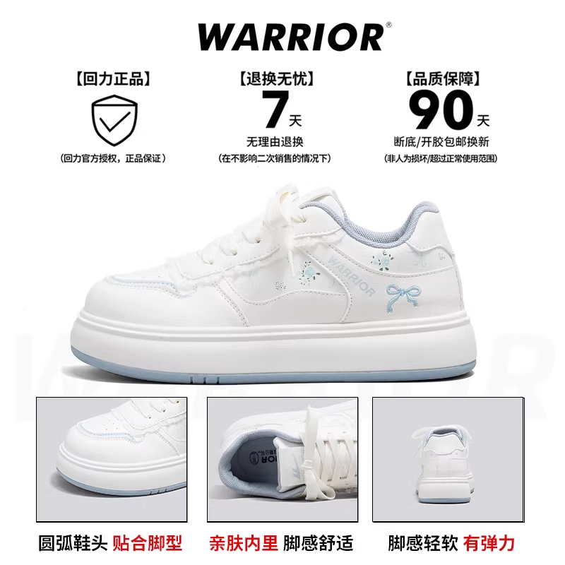 回力板鞋女款蝴蝶结运动百搭增高厚底小白鞋蓝色休闲秋冬圆头舒适