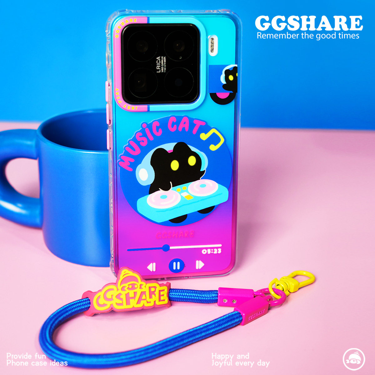 GGSHARE寄居蟹原创唱片猫咪适用小米15ultra手机壳 新款双层磨砂14pro手机套卡通防摔保护套带磁吸支架手腕绳