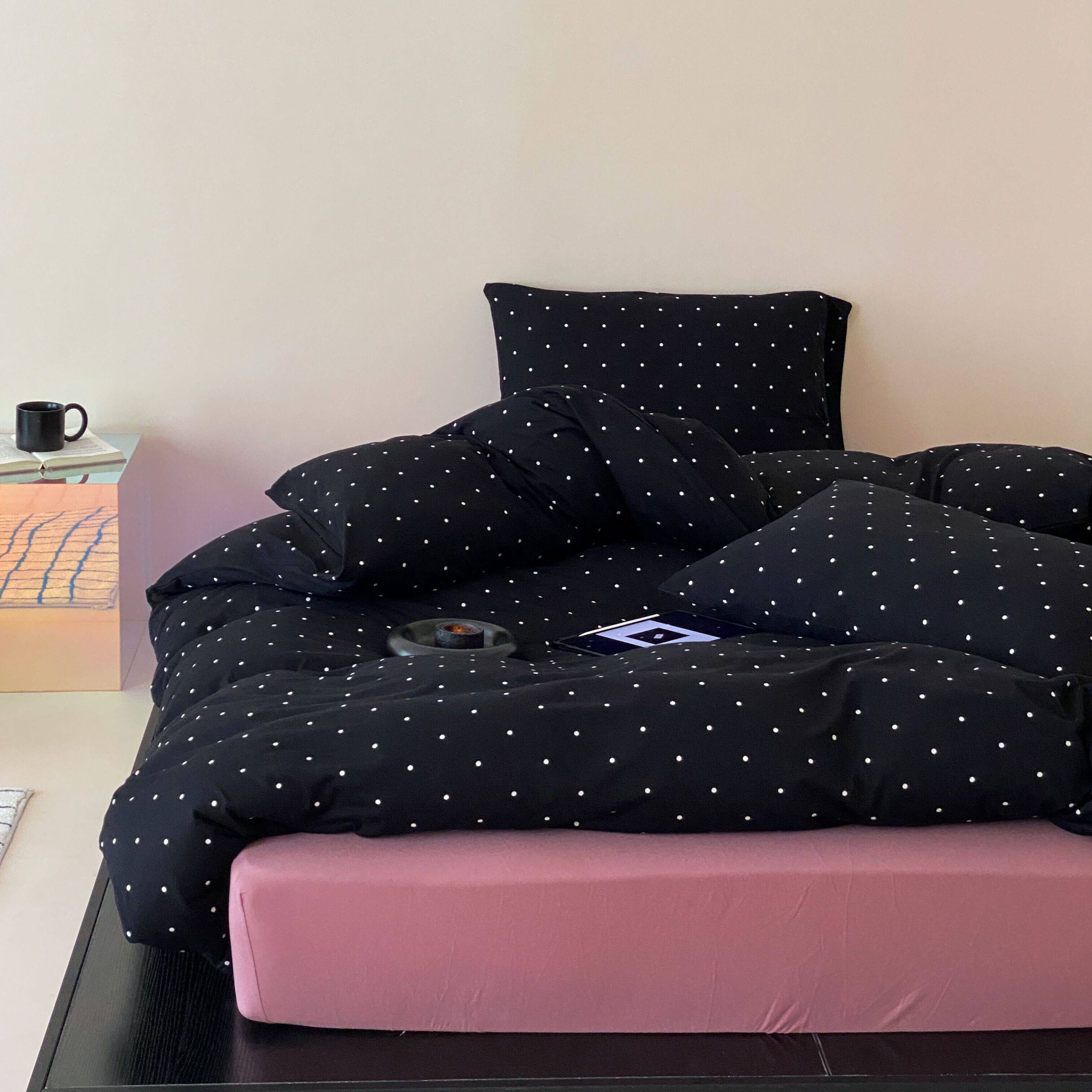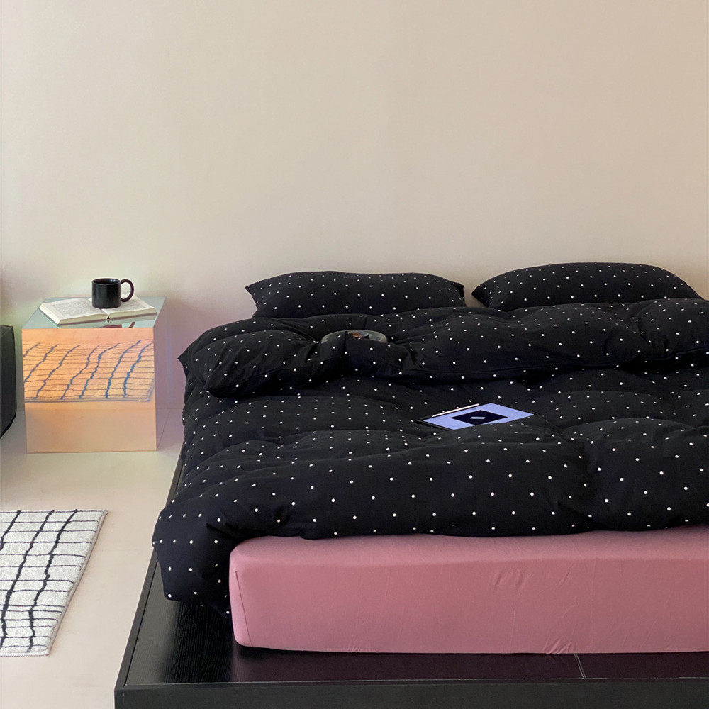 黑色小波点柔软裸睡天竺棉四件套纯棉床单被套全棉少女心床上用品