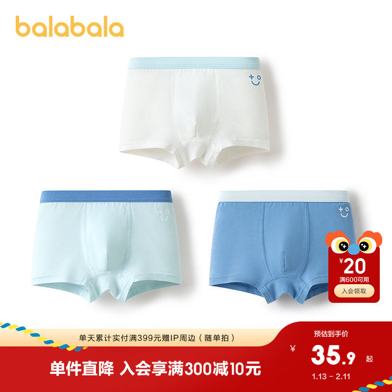 【balaOne】巴拉巴拉儿童内裤棉男童不夹pp抗菌裆四角短裤三条装
