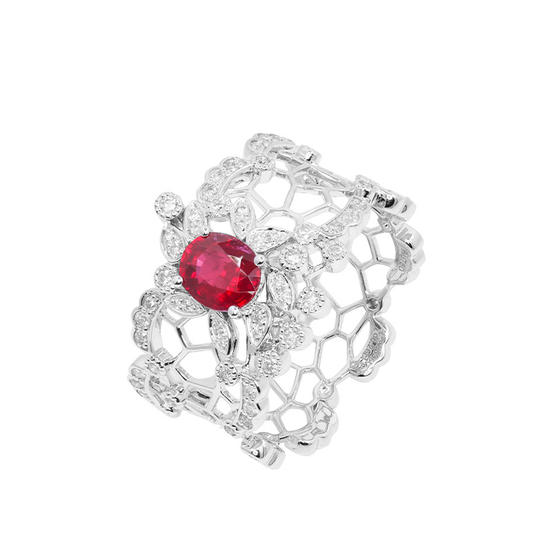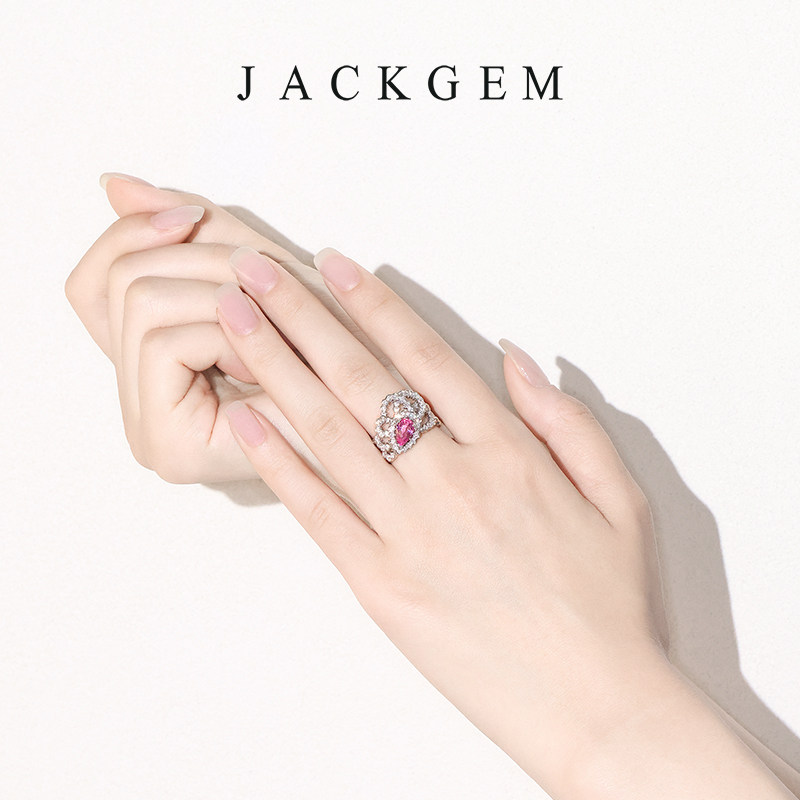 【织梦蕾丝】粉宝石戒指女鸽血红戒指红宝石戒指女钻戒女婚戒金G9
